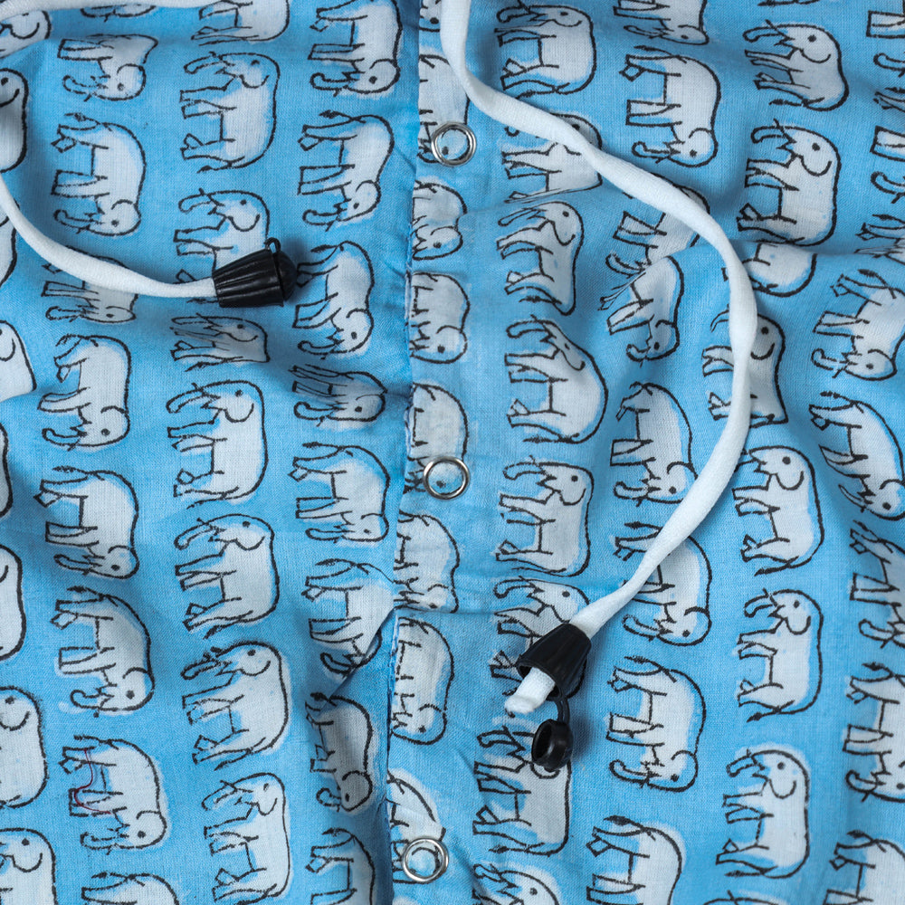 Fine quality hand block printed pure cotton fabric handmade baby full sleeves long romper/sleepsuit. Grab this cute baby sleepsuit for your little babies. Your babies will feel comfortable and happy all day long in this romper/sleepsuit.