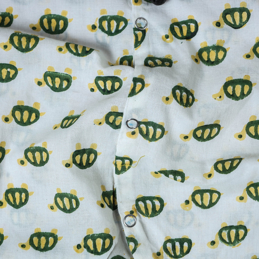 Fine quality hand block printed pure cotton fabric handmade baby full sleeves long romper/sleepsuit. Grab this cute baby sleepsuit for your little babies. Your babies will feel comfortable and happy all day long in this romper/sleepsuit.