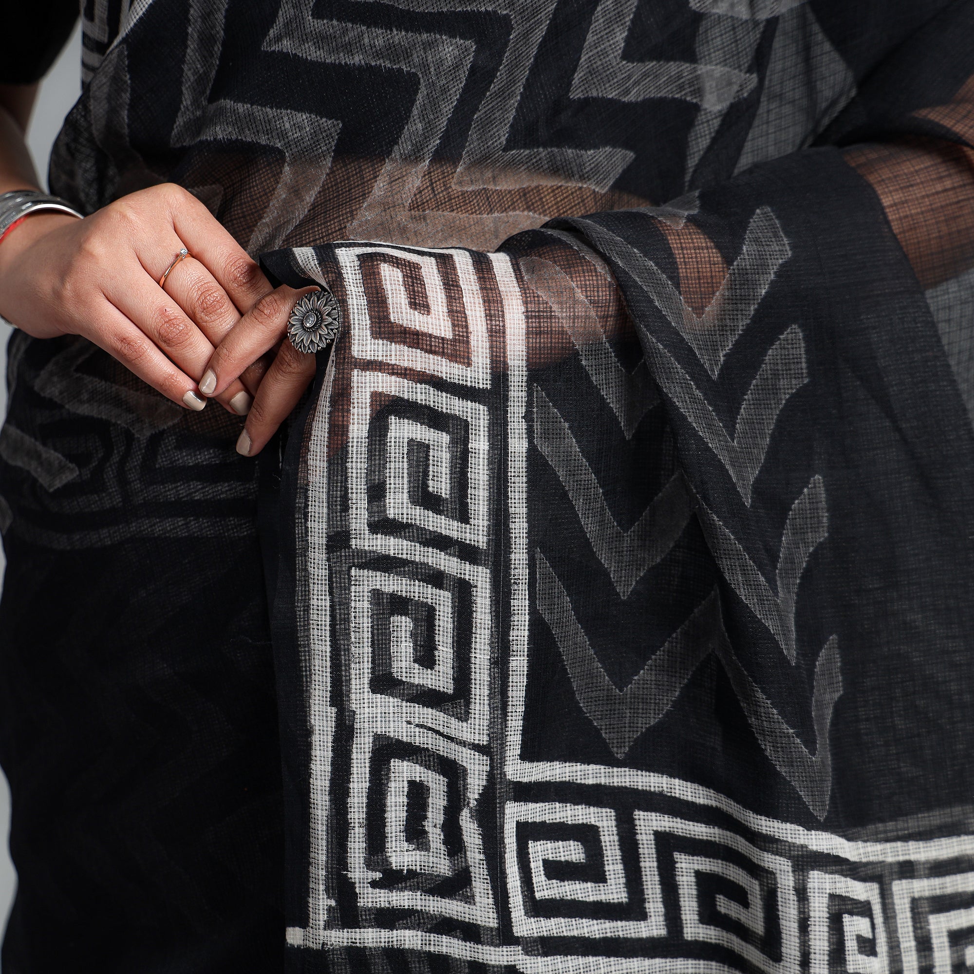 Fine quality sanganeri hand block prints kota doria cotton saree. Sanganeri is a hand-block printing technique originating from Sanganer, a village in the southern part of Jaipur, Rajasthan. Kota doria is a blend of strong cotton and lustrous silk yarns. The Doria or the threads are finely interweaves to make the check patterns. Its lightweight and sheer texture giving an exquisite grace and elegance of its own.