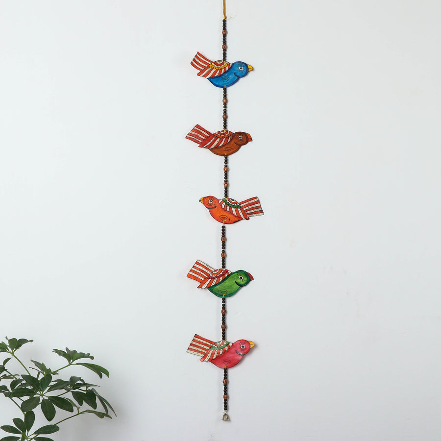 | Material | Fine handmade Tholu Bommalata leather puppet wall hanging with wooden beads. Tholu Bommalata is the shadow puppet theatre tradition of the state of Andhra Pradesh in India. Tholu bommalata literally means "the dance of leather puppets" (tholu – "leather" and bommalata – "puppet dance") is a 2000 year old craft and is one of the oldest form of performing arts.. The traditional process of crafting shadow puppets requires 30-40 days, from the procurement of leather to the completion of the product. Two other kinds of shadow puppetry are practiced in Andhra Pradesh, the Sutram Bommalata (String puppets) and the Koyya Bommalata(Wooden puppets). The leather puppets, because of their transparency and jewel like glow, are most popular. The puppets are mounted in the middle on a palm stem, extended to form a handle used to move the body of the puppet. The puppets are painted with hands using natural and poster colours. But apart from the translucency and vivid colours, what gives these puppets their brilliance, is the perforated designs drawn on the characters to depict jewellery. Once surrounded by colour and viewed against the light, they look like glowing jewels. |