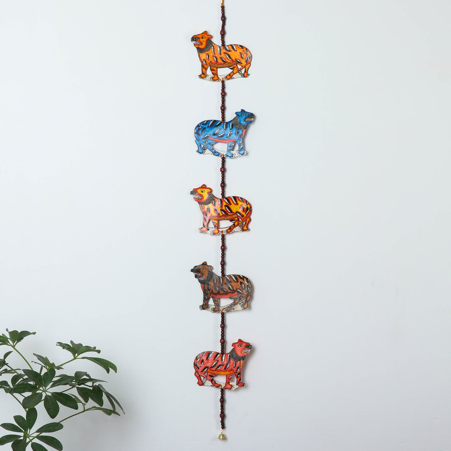 | Material | Fine handmade Tholu Bommalata leather puppet wall hanging with wooden beads. Tholu Bommalata is the shadow puppet theatre tradition of the state of Andhra Pradesh in India. Tholu bommalata literally means "the dance of leather puppets" (tholu – "leather" and bommalata – "puppet dance") is a 2000 year old craft and is one of the oldest form of performing arts.. The traditional process of crafting shadow puppets requires 30-40 days, from the procurement of leather to the completion of the product. Two other kinds of shadow puppetry are practiced in Andhra Pradesh, the Sutram Bommalata (String puppets) and the Koyya Bommalata(Wooden puppets). The leather puppets, because of their transparency and jewel like glow, are most popular. The puppets are mounted in the middle on a palm stem, extended to form a handle used to move the body of the puppet. The puppets are painted with hands using natural and poster colours. But apart from the translucency and vivid colours, what gives these puppets their brilliance, is the perforated designs drawn on the characters to depict jewellery. Once surrounded by colour and viewed against the light, they look like glowing jewels. |