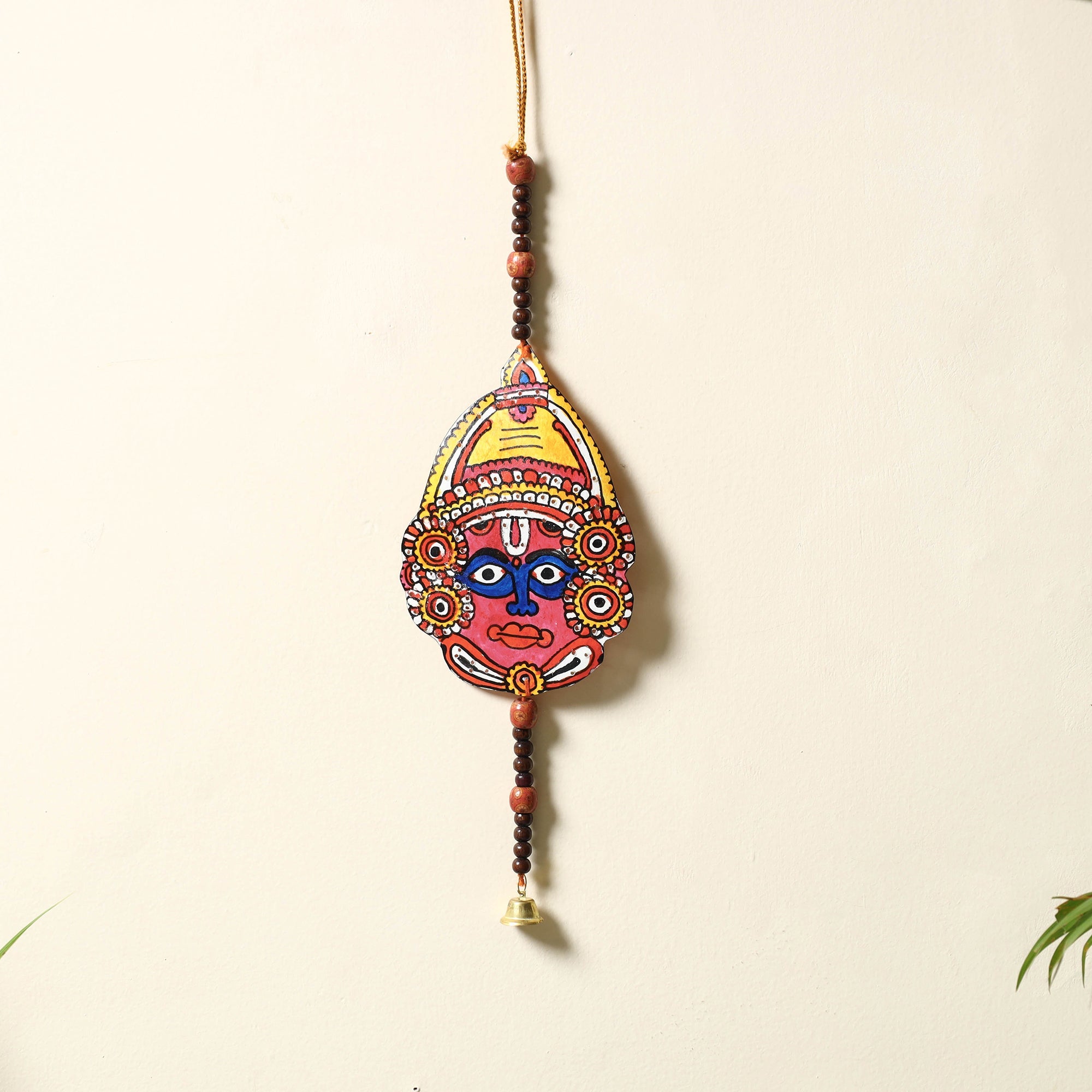 | Material | Fine handmade Tholu Bommalata leather puppet wall hanging with wooden beads. Tholu Bommalata is the shadow puppet theatre tradition of the state of Andhra Pradesh in India. Tholu bommalata literally means "the dance of leather puppets" (tholu – "leather" and bommalata – "puppet dance") is a 2000 year old craft and is one of the oldest form of performing arts.. The traditional process of crafting shadow puppets requires 30-40 days, from the procurement of leather to the completion of the product. Two other kinds of shadow puppetry are practiced in Andhra Pradesh, the Sutram Bommalata (String puppets) and the Koyya Bommalata(Wooden puppets). The leather puppets, because of their transparency and jewel like glow, are most popular. The puppets are mounted in the middle on a palm stem, extended to form a handle used to move the body of the puppet. The puppets are painted with hands using natural and poster colours. But apart from the translucency and vivid colours, what gives these puppets their brilliance, is the perforated designs drawn on the characters to depict jewellery. Once surrounded by colour and viewed against the light, they look like glowing jewels. |