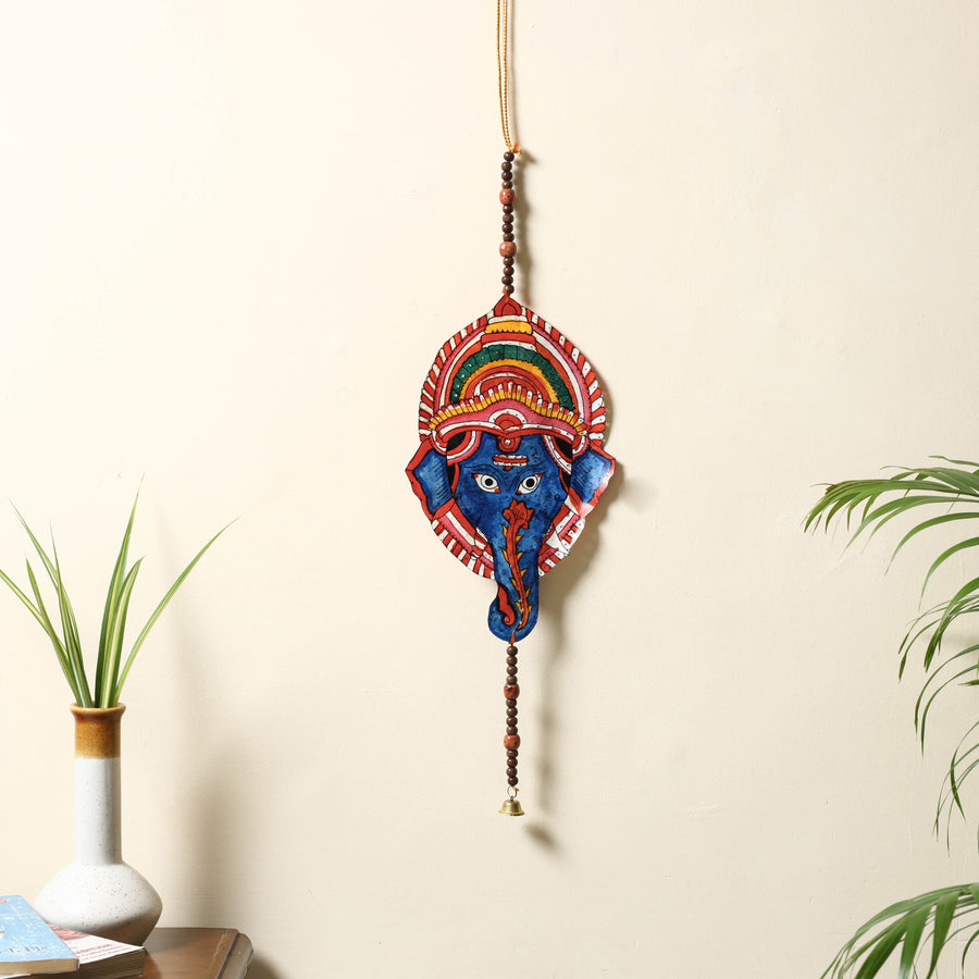 | Material | Fine handmade Tholu Bommalata leather puppet wall hanging with wooden beads. Tholu Bommalata is the shadow puppet theatre tradition of the state of Andhra Pradesh in India. Tholu bommalata literally means "the dance of leather puppets" (tholu – "leather" and bommalata – "puppet dance") is a 2000 year old craft and is one of the oldest form of performing arts.. The traditional process of crafting shadow puppets requires 30-40 days, from the procurement of leather to the completion of the product. Two other kinds of shadow puppetry are practiced in Andhra Pradesh, the Sutram Bommalata (String puppets) and the Koyya Bommalata(Wooden puppets). The leather puppets, because of their transparency and jewel like glow, are most popular. The puppets are mounted in the middle on a palm stem, extended to form a handle used to move the body of the puppet. The puppets are painted with hands using natural and poster colours. But apart from the translucency and vivid colours, what gives these puppets their brilliance, is the perforated designs drawn on the characters to depict jewellery. Once surrounded by colour and viewed against the light, they look like glowing jewels. |