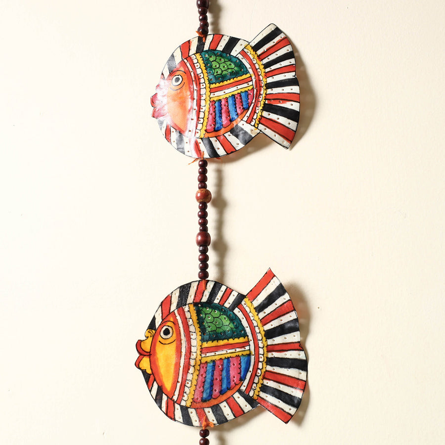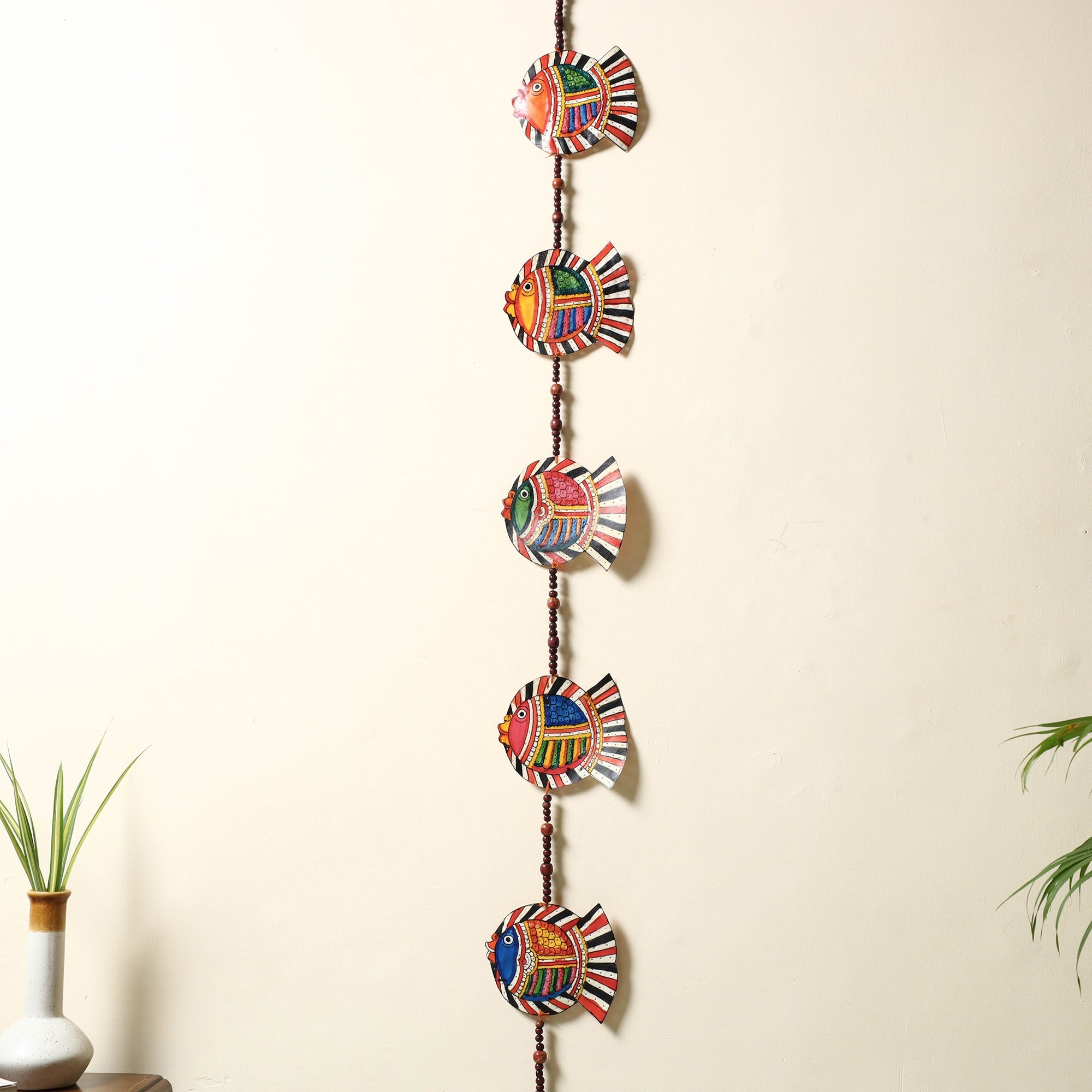 | Material | Fine handmade Tholu Bommalata leather puppet wall hanging with wooden beads. Tholu Bommalata is the shadow puppet theatre tradition of the state of Andhra Pradesh in India. Tholu bommalata literally means "the dance of leather puppets" (tholu – "leather" and bommalata – "puppet dance") is a 2000 year old craft and is one of the oldest form of performing arts.. The traditional process of crafting shadow puppets requires 30-40 days, from the procurement of leather to the completion of the product. Two other kinds of shadow puppetry are practiced in Andhra Pradesh, the Sutram Bommalata (String puppets) and the Koyya Bommalata(Wooden puppets). The leather puppets, because of their transparency and jewel like glow, are most popular. The puppets are mounted in the middle on a palm stem, extended to form a handle used to move the body of the puppet. The puppets are painted with hands using natural and poster colours. But apart from the translucency and vivid colours, what gives these puppets their brilliance, is the perforated designs drawn on the characters to depict jewellery. Once surrounded by colour and viewed against the light, they look like glowing jewels. |