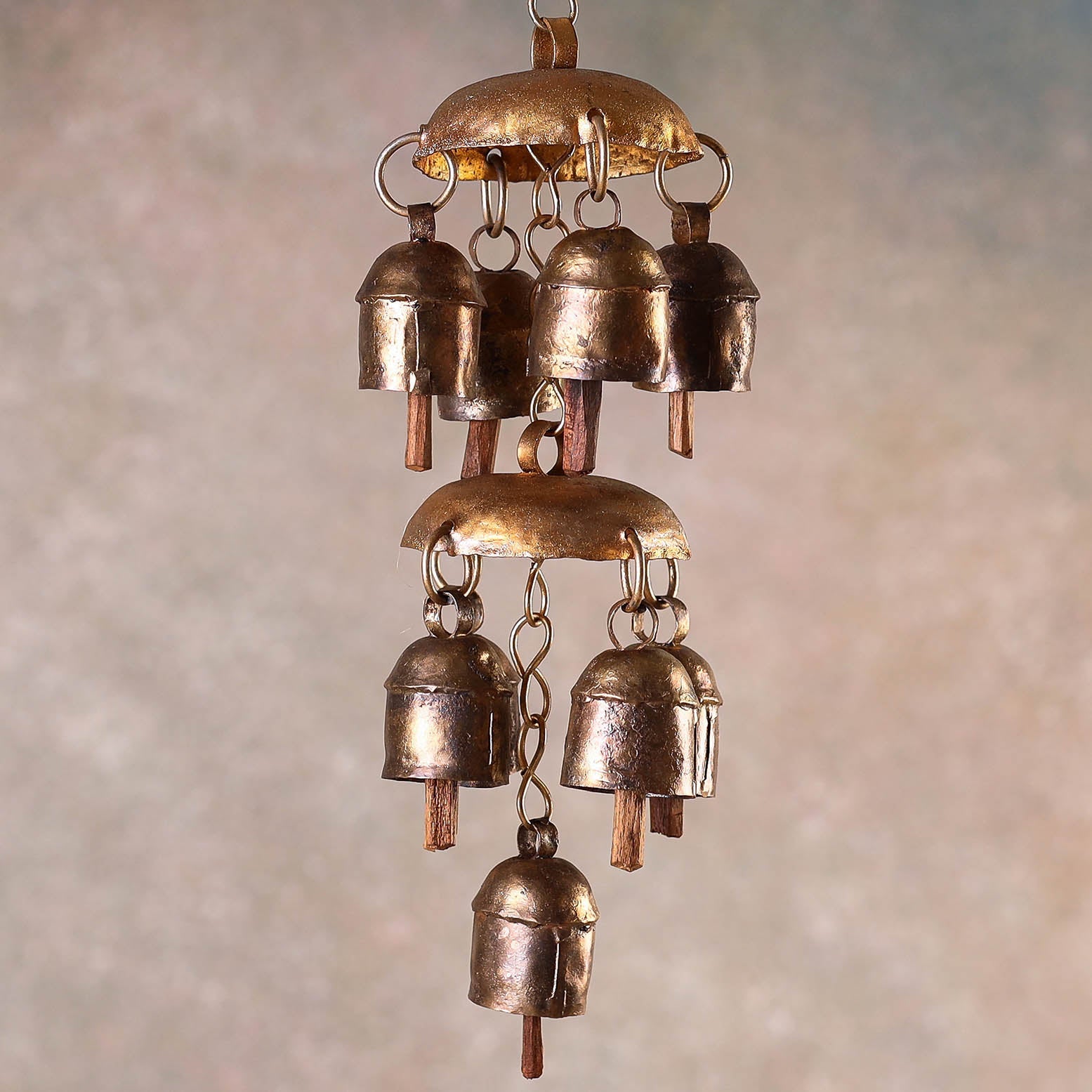 Made of high quality metal bell with copper coating, along with a few other metals. The unique melodic tones that emanate from Kachchh’s metal bells give voice to a centuries-old craft tradition that the Muslim Lohar community brought to Kachchh from Sindh, Pakistan.Today, the use of Kachchh’s traditional bells has expanded; they hang in entrance way are combined to make wind chimes, and are used as other forms of festive decoration.
