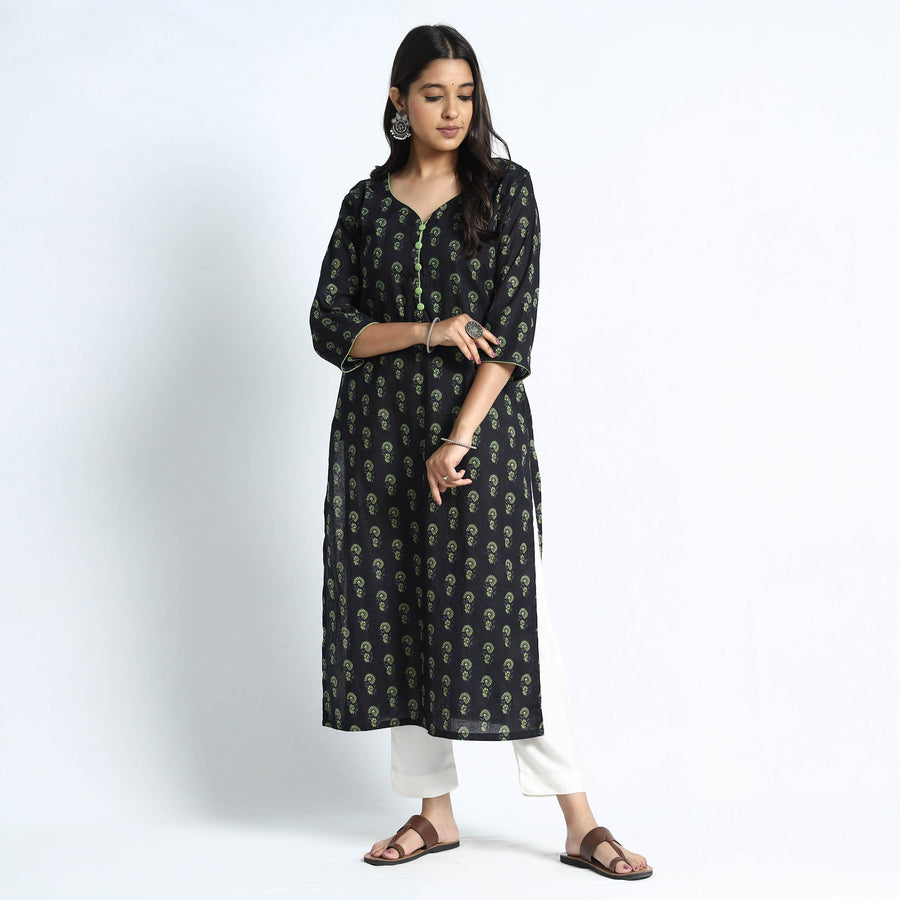 Fine quality sanganeri hand block printed cotton kurta with side pocket. Look and feel beautiful in this uniquely designed cotton long kurta. This cotton kurta makes you comfortable with ease all day long. This kurti is perfect for your daily outing and for a special occasion.