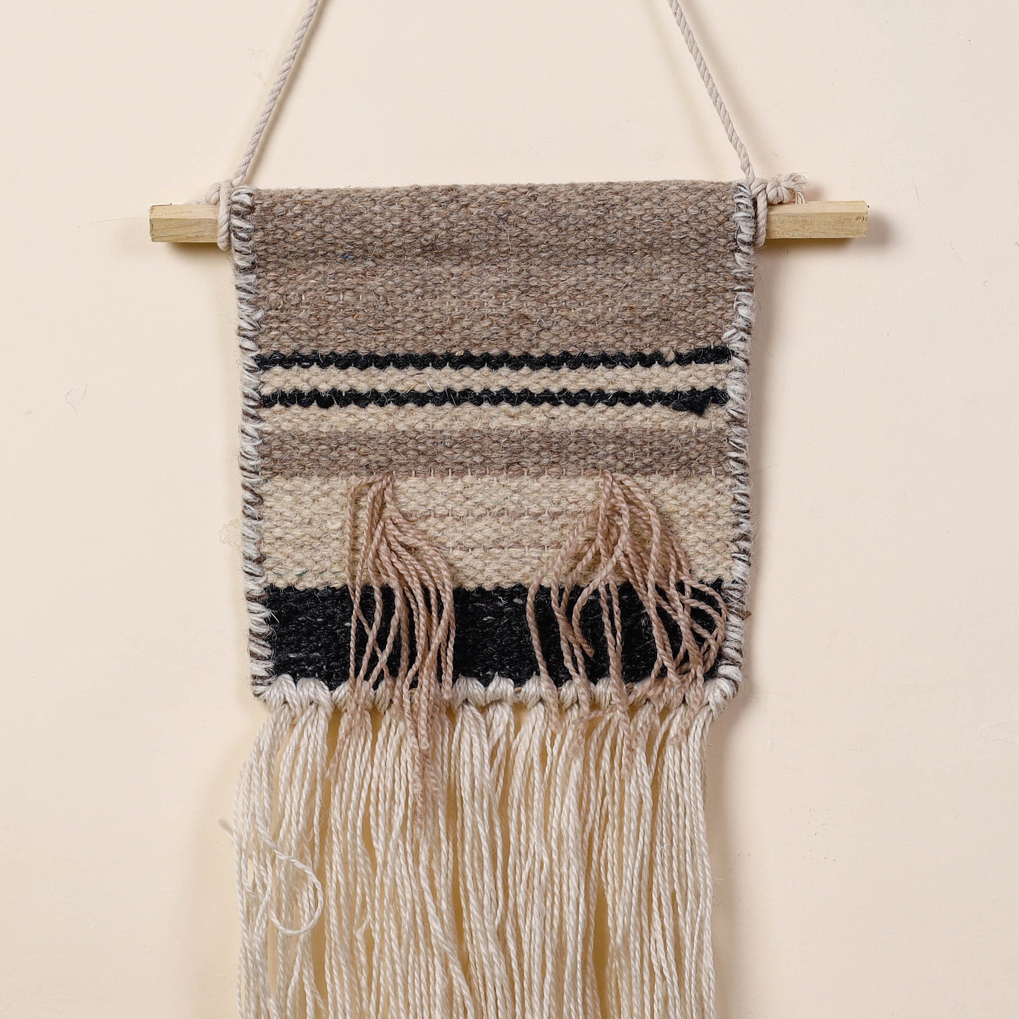 Bhadohi Handwoven Wool Geometric Fringed Wall Hanging