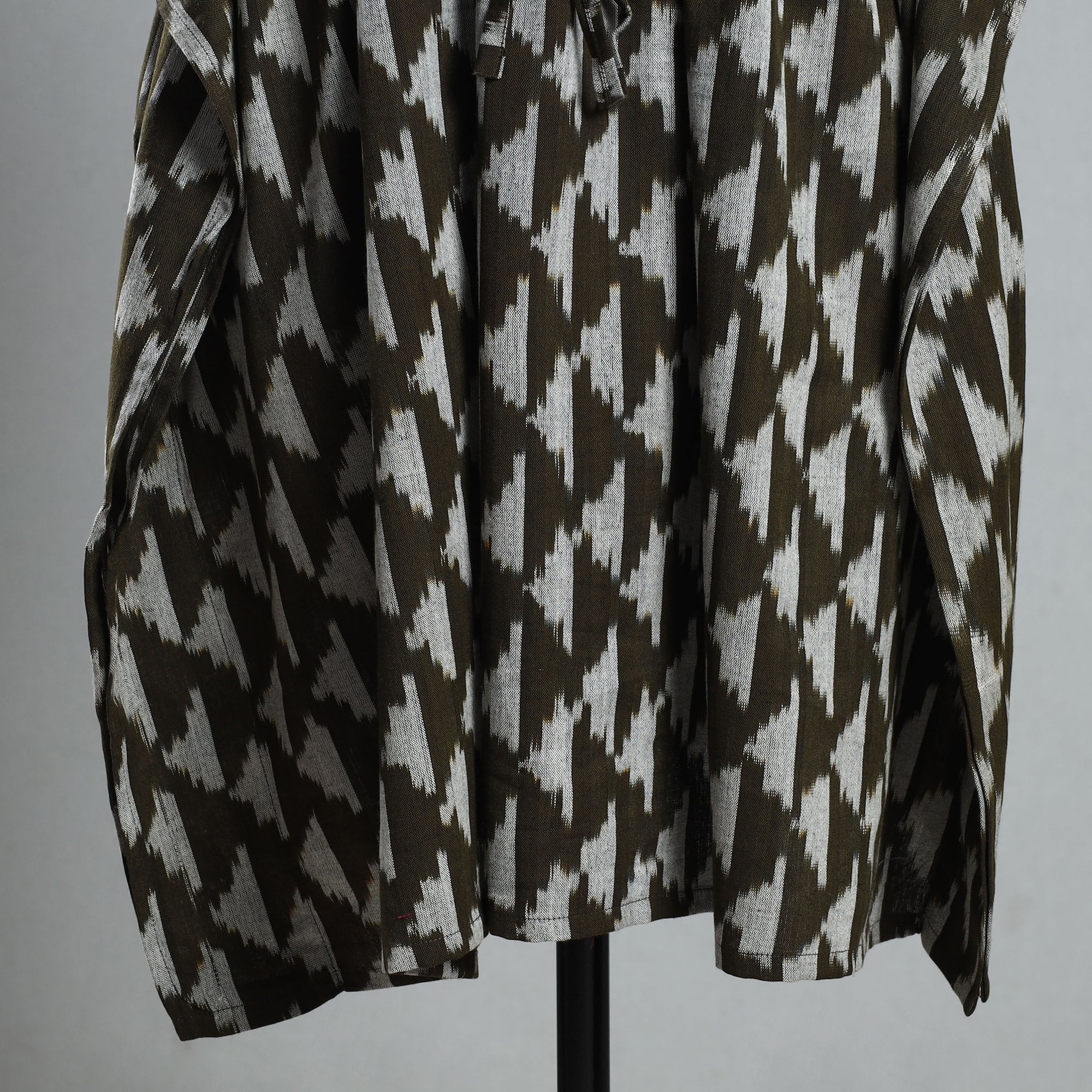 Fine quality ikat weave cotton medium kaftan with adjustable drawstring waist tie. A traditional kaftan or caftan is an knee-length garment with long, flowing sleeves These loose-fitting cotton kaftans are enhanced by a soft touch and beautiful hand prints. This dress will allow you to move with ease and comfort. The drawstring waist tie will give you the freedom to customize the fit to suit your unique shape. Ikat has lovely patterns in extremely beautiful colours. Ikat fabrics are world famous for their colours, texture and designs. Indian Ikat is one of the fabrics that is always admired by the fashion designers around the world. Be at your comfortable and stylish best!