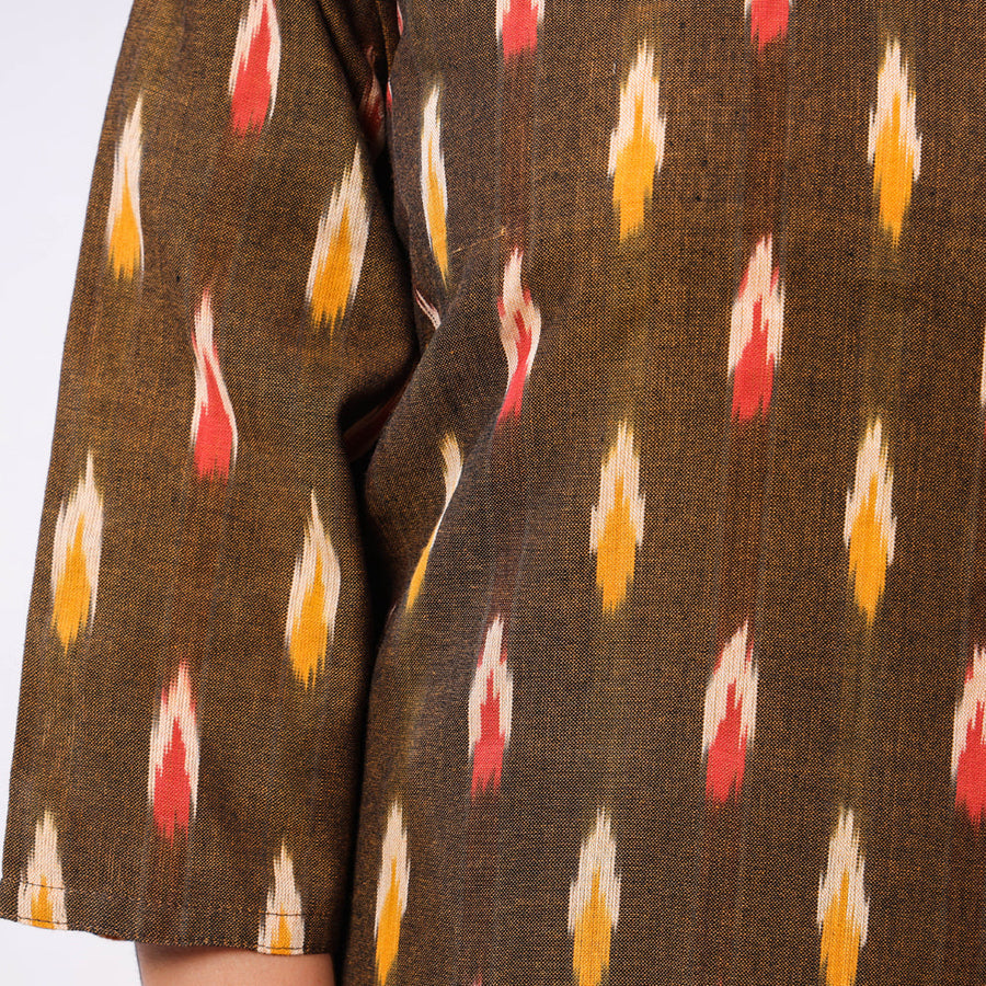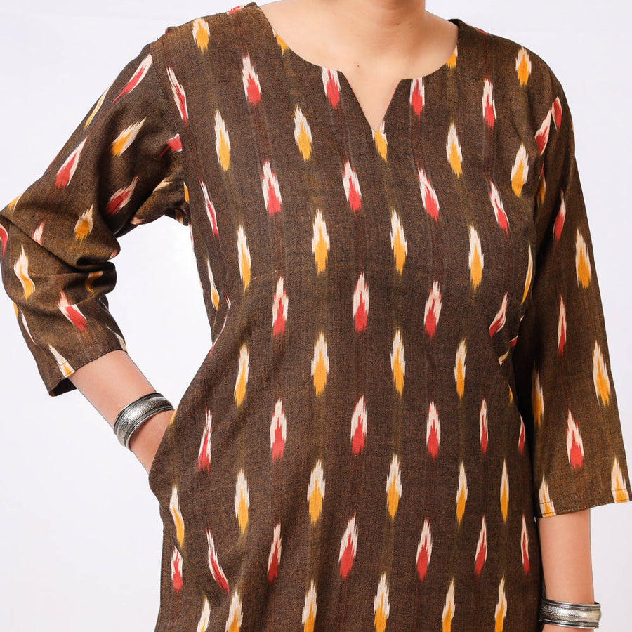 Look and feel beautiful in this uniquely designed ikat weave cotton long kurta with side pocket. This cotton kurta makes you comfortable with ease all day long. Ikat has lovely patterns in extremely beautiful colours. Ikat fabrics are world famous for their colours, texture and designs. Indian Ikat is one of the fabrics that is always admired by the fashion designers around the world.