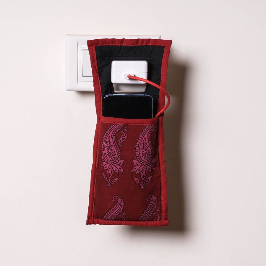 Red Handmade mobile charging holder made up with cotton fabric. Premium quality fabric is used to make it soft & comfy. It's quite handy & portable while traveling. It keeps your phone safe and protected. It's very convenient during charging your mobile phone. It comes in different colors.