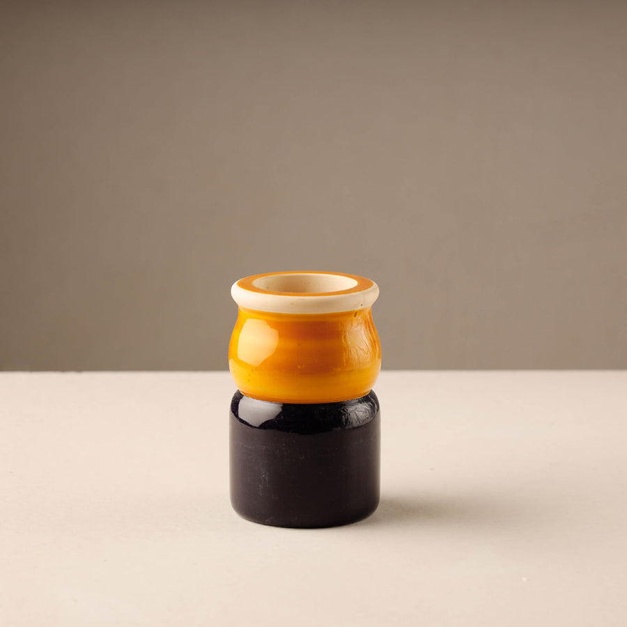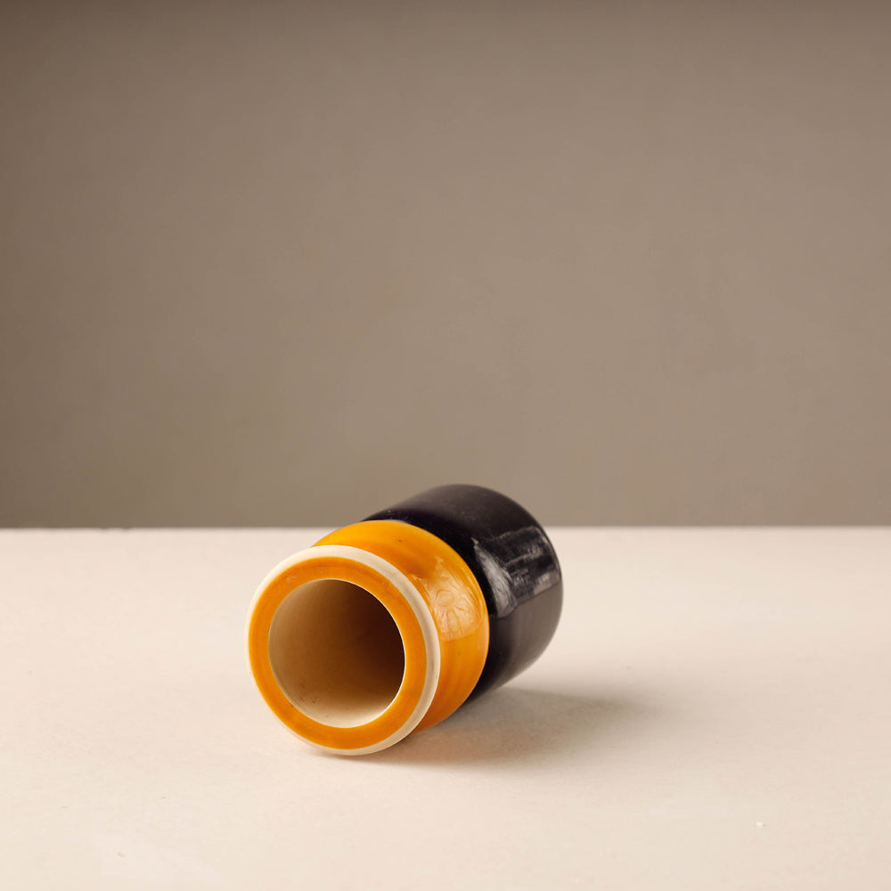 Handmade traditional channapatna wooden jar from Andhra Pradesh. This jar is hand painted with natural dyes. Colors are obtained naturally Yellow colour from turmeric, Red colour kum-kum base, Green colour vegetable leaf dye, Orange colour from Saffron dye. This product is a lacware craft which is made of lac, a naturally available resin. It is non-toxic and chemical free and safe for children. Good play item for kids and nice for gifting or house decoration.