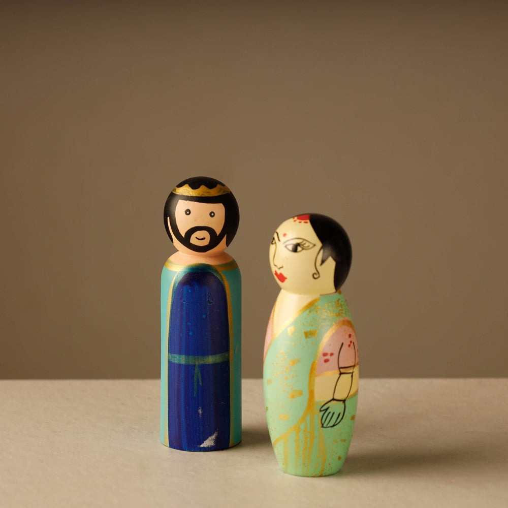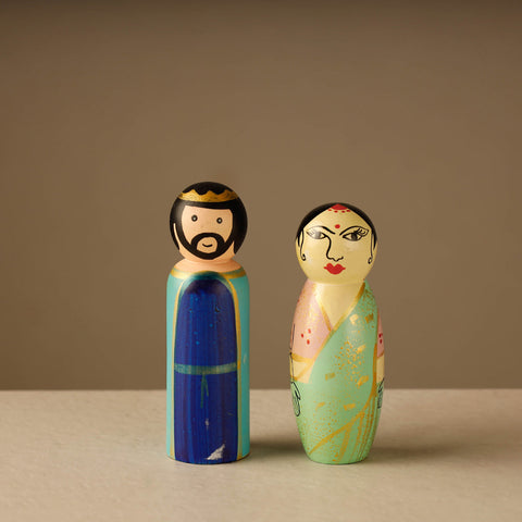 Channapatna toys are a particular form of wooden toys (and dolls) that are manufactured in the town of Channapatna in the Ramanagara district of Karnataka state, India. As a result of the popularity of these toys, Channapatna is known as Gombegala Ooru (toy-town) of Karnataka. The craft has diversified over time, For nearly two centuries, ivory-wood was the main wood used in the making of these toys, though rosewood and sandalwood were also occasionally used. other woods - including rubber, sycamore, cedar, pine and teak are now used as well. Manufacturing stages include procuring the wood, seasoning the wood, cutting the wood into the desired shapes, pruning and carving the toys, applying the colours and finally polishing the finished product. Vegetable dyes are used in the colouring process to ensure that the toys and dolls are safe for use by children.