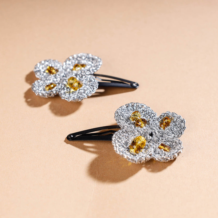 Handmade crochet flower, no-slip tic tac hair clips, made from viscose thread, crystal beads, metal clip.