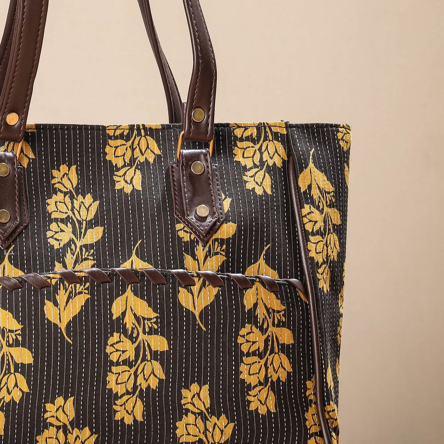 Brown handcrafted running sticth shoulder bag made from printed cotton fabric & rexine. It has two zipper pocket outside & one zipper pocket inside. Ample space to keep most of your essentials.