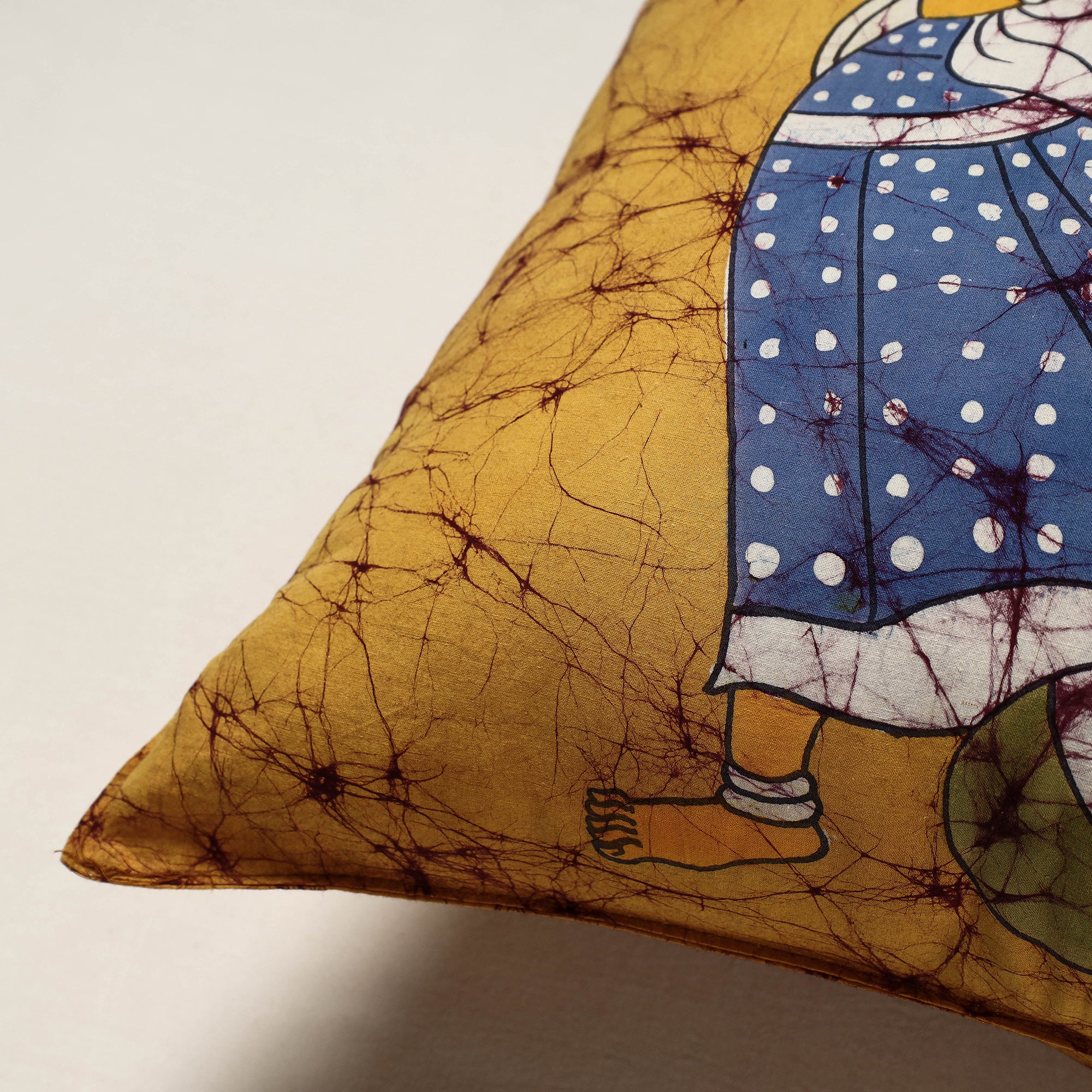 Fine quality hand batik printed pure cotton cushion cover from Ujjain. Batik is a technique of wax-resist dyeing applied to whole cloth, or cloth made using this technique. The traditional designs and motifs in Indian batik are often passed down from one generation to another.
