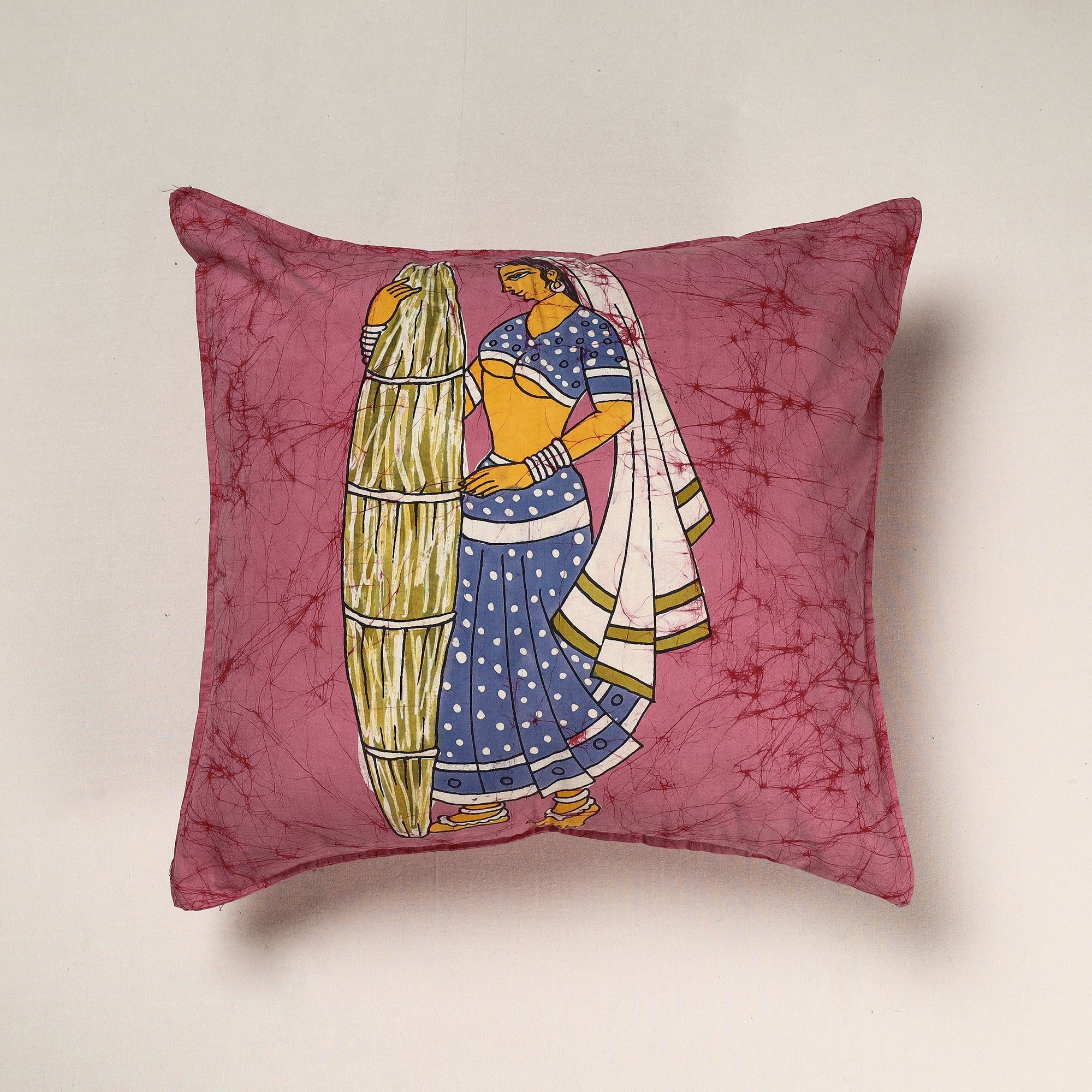 Fine quality hand batik printed pure cotton cushion cover from Ujjain. Batik is a technique of wax-resist dyeing applied to whole cloth, or cloth made using this technique. The traditional designs and motifs in Indian batik are often passed down from one generation to another.