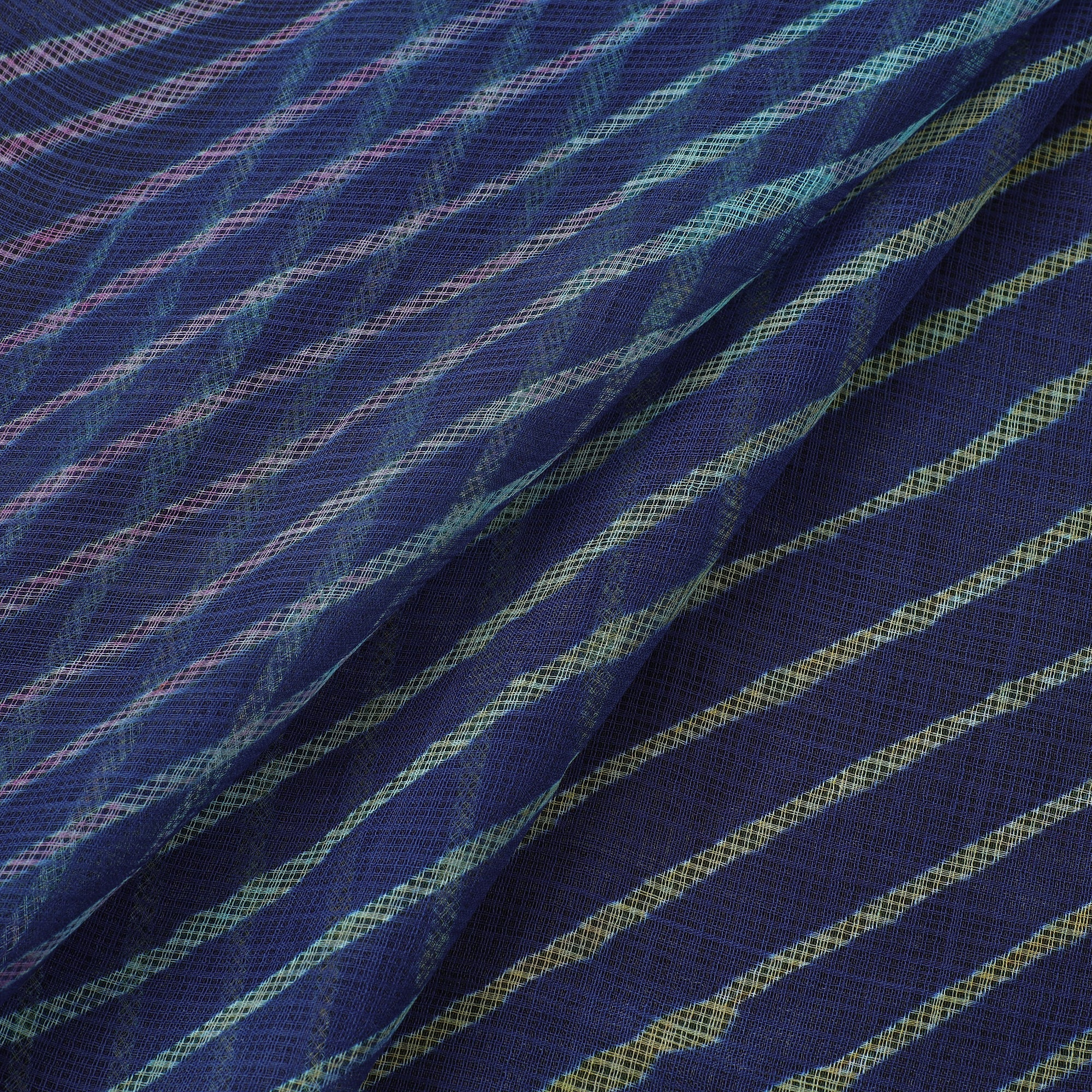 This fabric has been dyed in leheriya tie-dye technique of Rajasthan by master artisan family of Badshah Miyan. 100% Lehariya print kota doria cotton fabric.