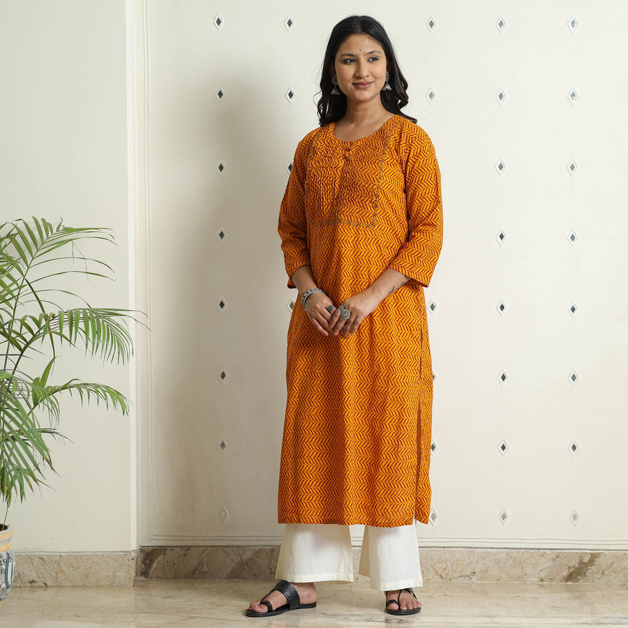Look and feel beautiful in this uniquely designed bagh natural dyed block printed cotton straight kurta with side pocket. This cotton kurta makes you comfortable with ease all day long. This kurta is perfect for your daily outing and for a special occasion. Bagh is a hand block printing technique from the Bagh, a small tribal town in Dhar district of Madhya Pradesh. ‘Bagh prints’ are trendy, cool and comfortable cloth material.