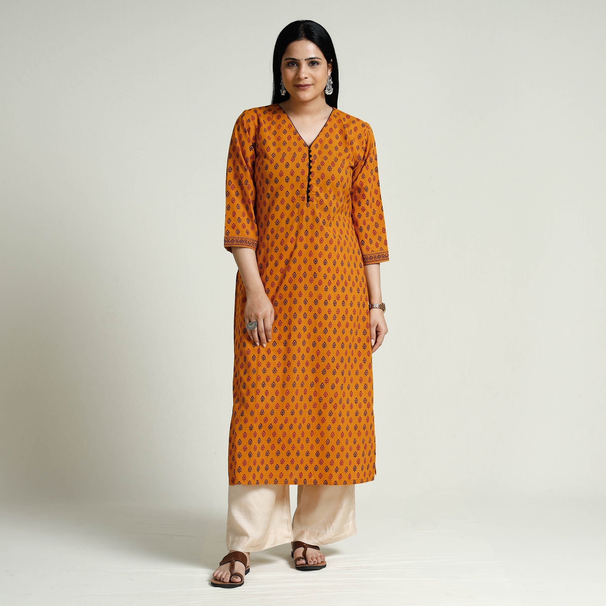 Look and feel beautiful in this uniquely designed bagh natural dyed block printed cotton straight kurta with side pocket. This cotton kurta makes you comfortable with ease all day long. This kurta is perfect for your daily outing and for a special occasion. Bagh is a hand block printing technique from the Bagh, a small tribal town in Dhar district of Madhya Pradesh. ‘Bagh prints’ are trendy, cool and comfortable cloth material.