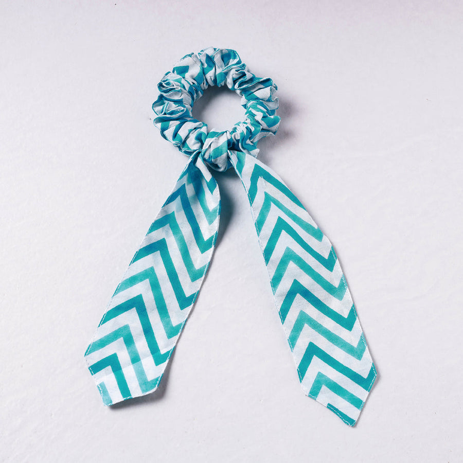 Handmade elastic hair bands/scarf ponytail holder/scrunchy ties made from sanganeri print cotton fabric.