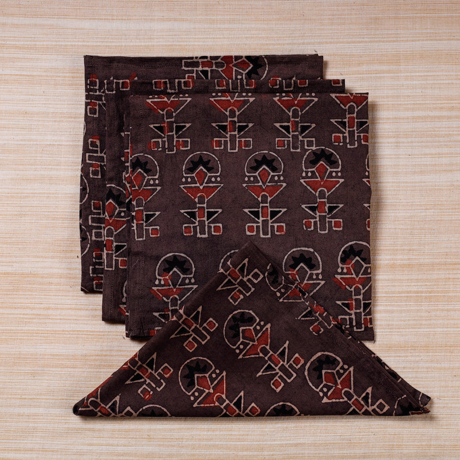 Add a soothing element to your table with these brown hand block prints cotton napkins. Their elegant look and feel will not just complement your dishes, cutlery but also give you a rejuvenating experience.
