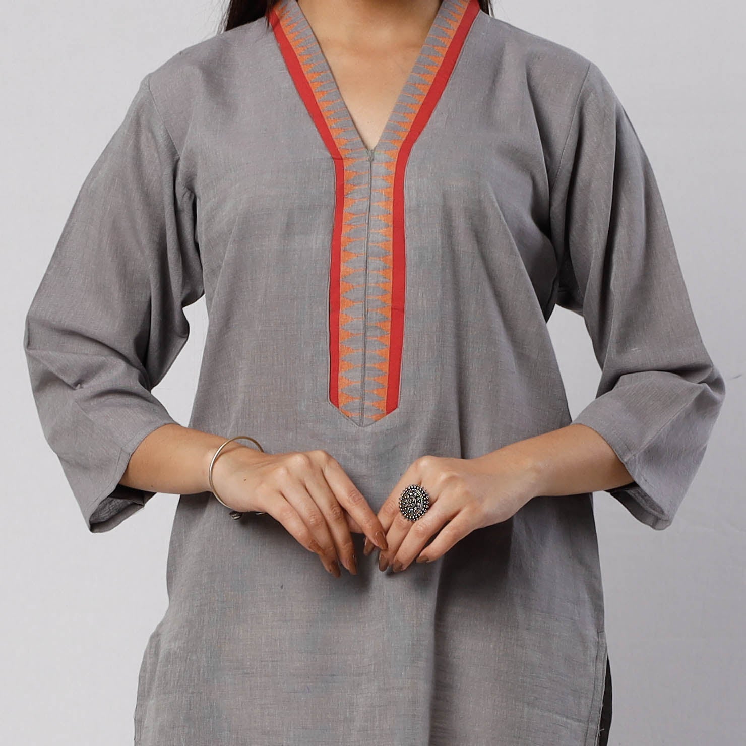 Look and feel beautiful in this uniquely designed jamdani handloom cotton short kurta with side pocket. This cotton kurta makes you comfortable with ease all day long. This kurta is perfect for your daily outing and for a special occasion. The base fabric for Jamdani is unbleached cotton yarn and the design is woven using bleached cotton yarns so that a light-and-dark effect is created. The process is extremely time consuming as it involves a tedious form of hand looming. The making of Jamdani involves the supplementary weft technique along with the standard weft technique. With the latter, the base sheer material is made on which thicker threads on used to create designs.