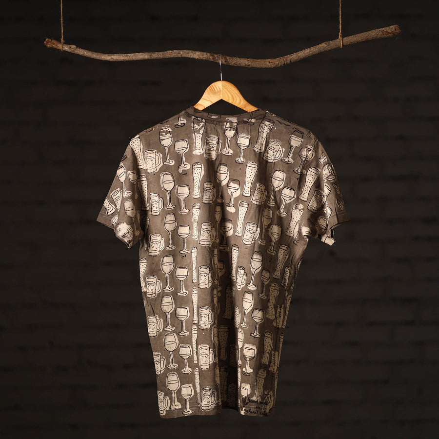 Pure cotton, natural dyed, hand block printed unisex round neck t-shirt. Contemporary designs made through traditional processes, by skilled fourth generation textile printers in Rajasthan. This slow fashion, hand block printed cotton t-shirt brings back the love for traditional skills, with a modern aesthetic and design.