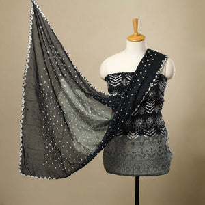 Black - Kutch Handwoven Merino Wool Tie-Dye Bandhani Shawl 01