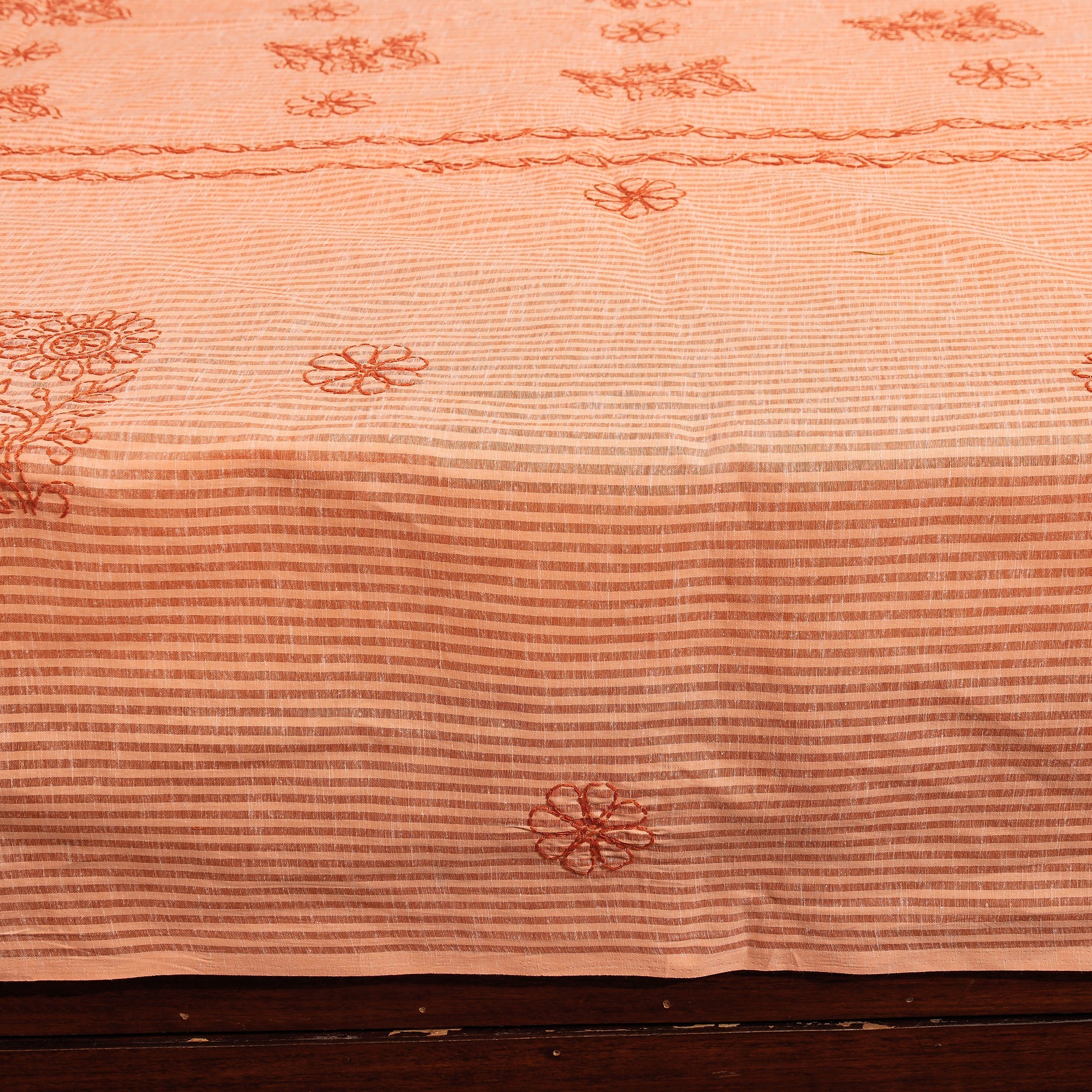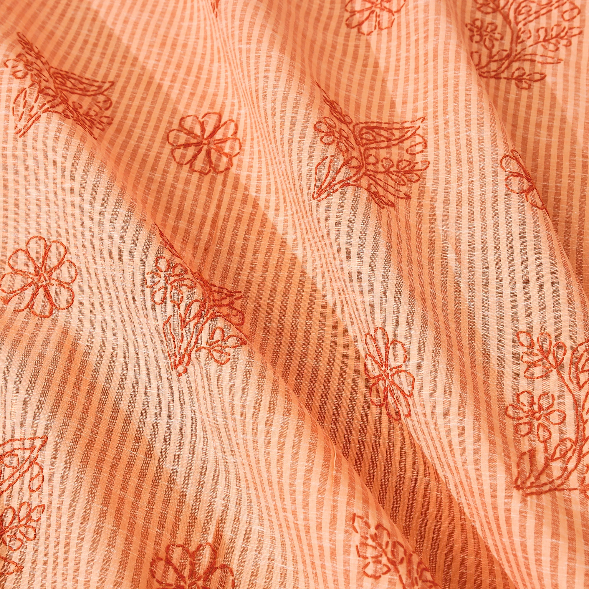 Orange - Lucknowi Chikankari Hand Work Pochampally Ikat Unstitched Kurta Material (2.45M) 43