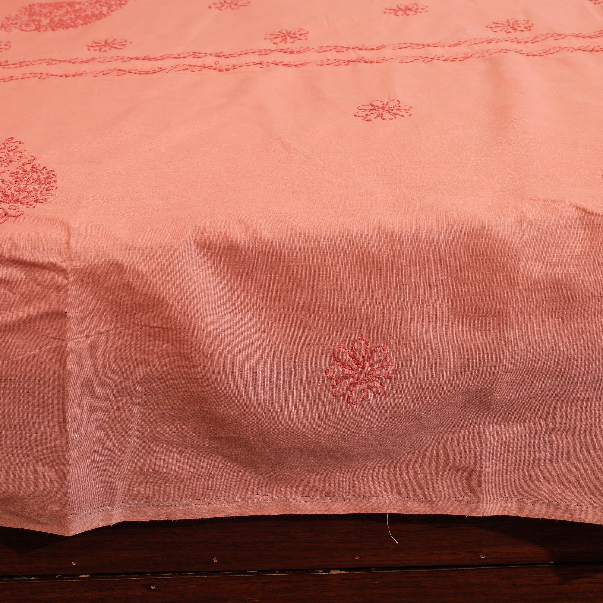 Orange - Lucknowi Chikankari Hand Work Pochampally Ikat Unstitched Kurta Material (2.45M) 43