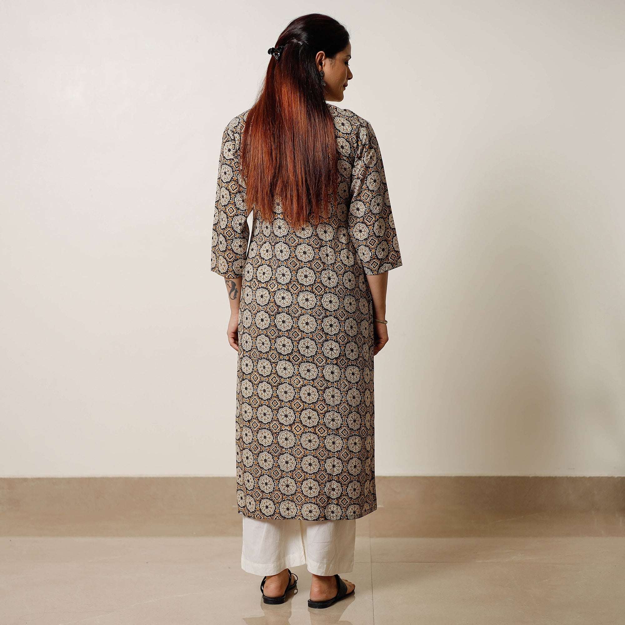 Look and feel beautiful in this uniquely designed brown bagru block print cotton long Kurta with side pocket. This cotton Kurta makes you comfortable with ease all day long. Made using natural dyes through traditional mud resist process by using hand carved wooden block practiced in Bagru, Rajasthan.