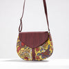 Yellow handpainted kalamkari natural dyed cotton sling bag with adjustable sling. It has one zipper pocket outside & one zipper pocket inside. This exquisite shoulder bag is created with handpainted kalamkari work, wherein the "Bamboo kalam" is used for free hand drawing of the subject and filling in the colours. It is entirely hand worked using natural colours.