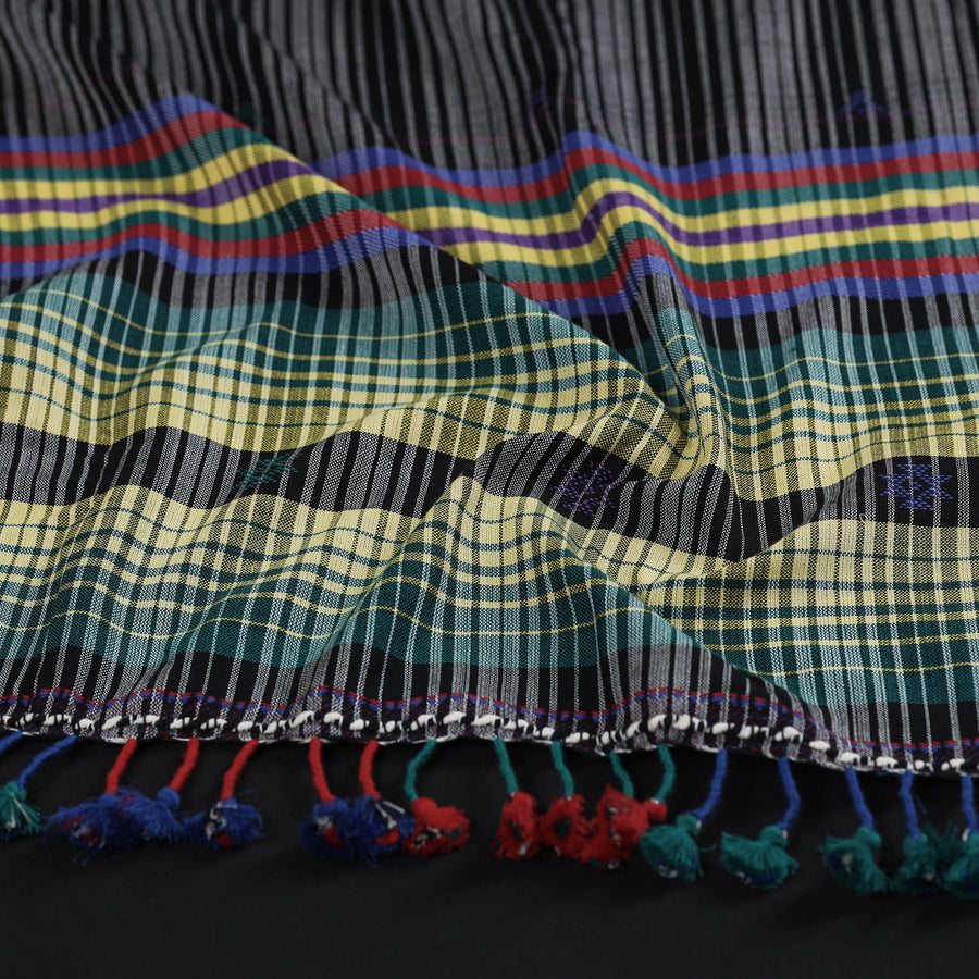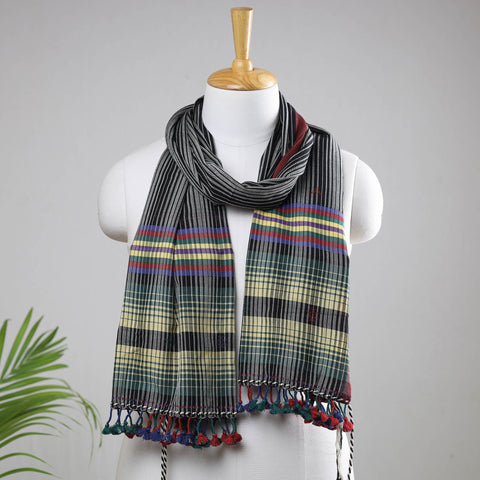 Fine quality kutch weave pure handloom cotton stole with tassels made by master artisans in Kutch region of Gujarat. The stole is woven with traditional Kutchi motifs. Soft textured.