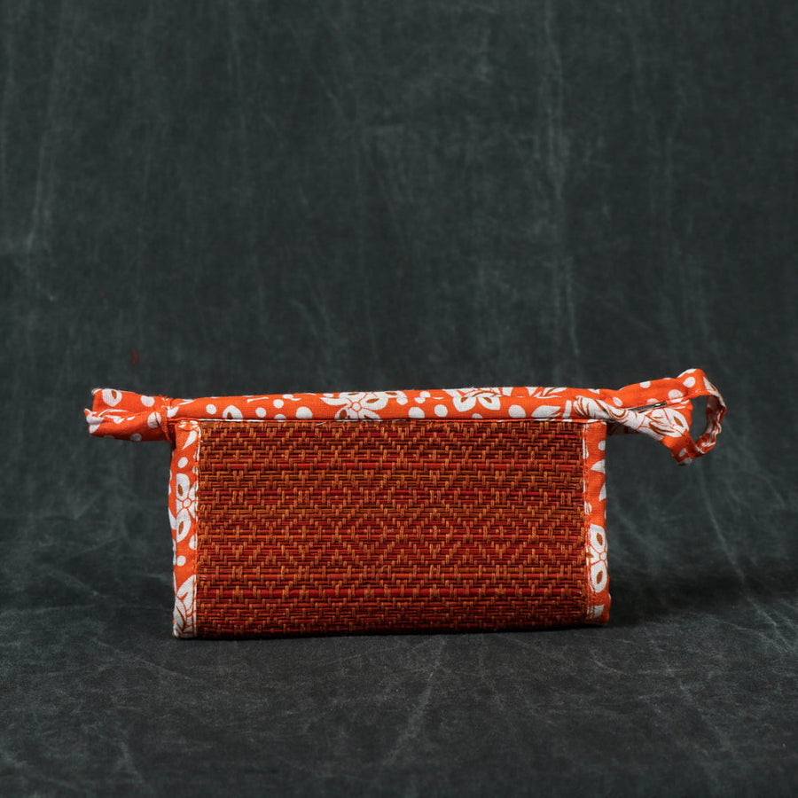 This handcrafted golden grass weaved multipurpose pencil pouch/ cosmetic bag/ toilet pouch is made with natural madur grass, twisted cotton yarn & madur kathi reed (Cyperus tegetum and C. Pangorie) that grows in the swampy area around Midnapur in West Bengal. The craft of "Madur" weaving is practiced in the residence cum workshops of artisans households with the help of family members.