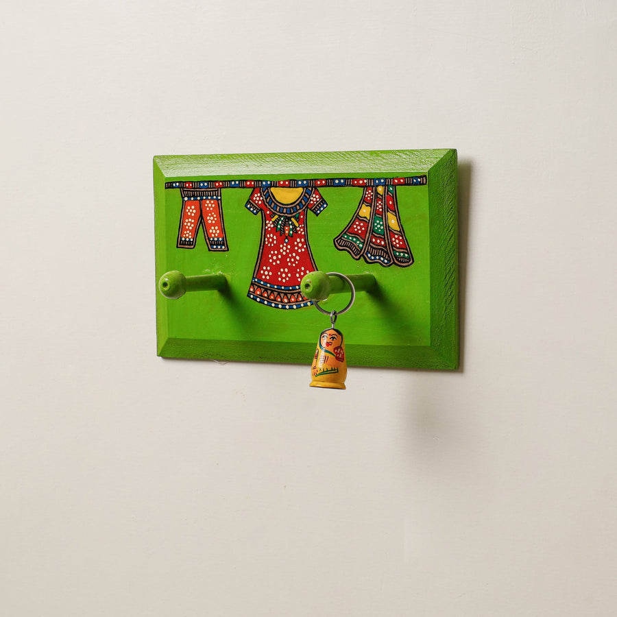Madhubani Handpainted Wooden Wall Hanger (2 peg)