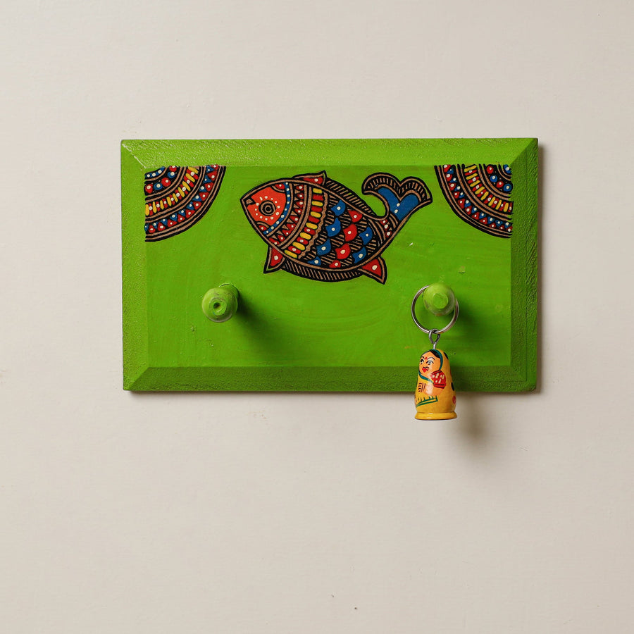 Madhubani Handpainted Wooden Wall Hanger (2 peg)