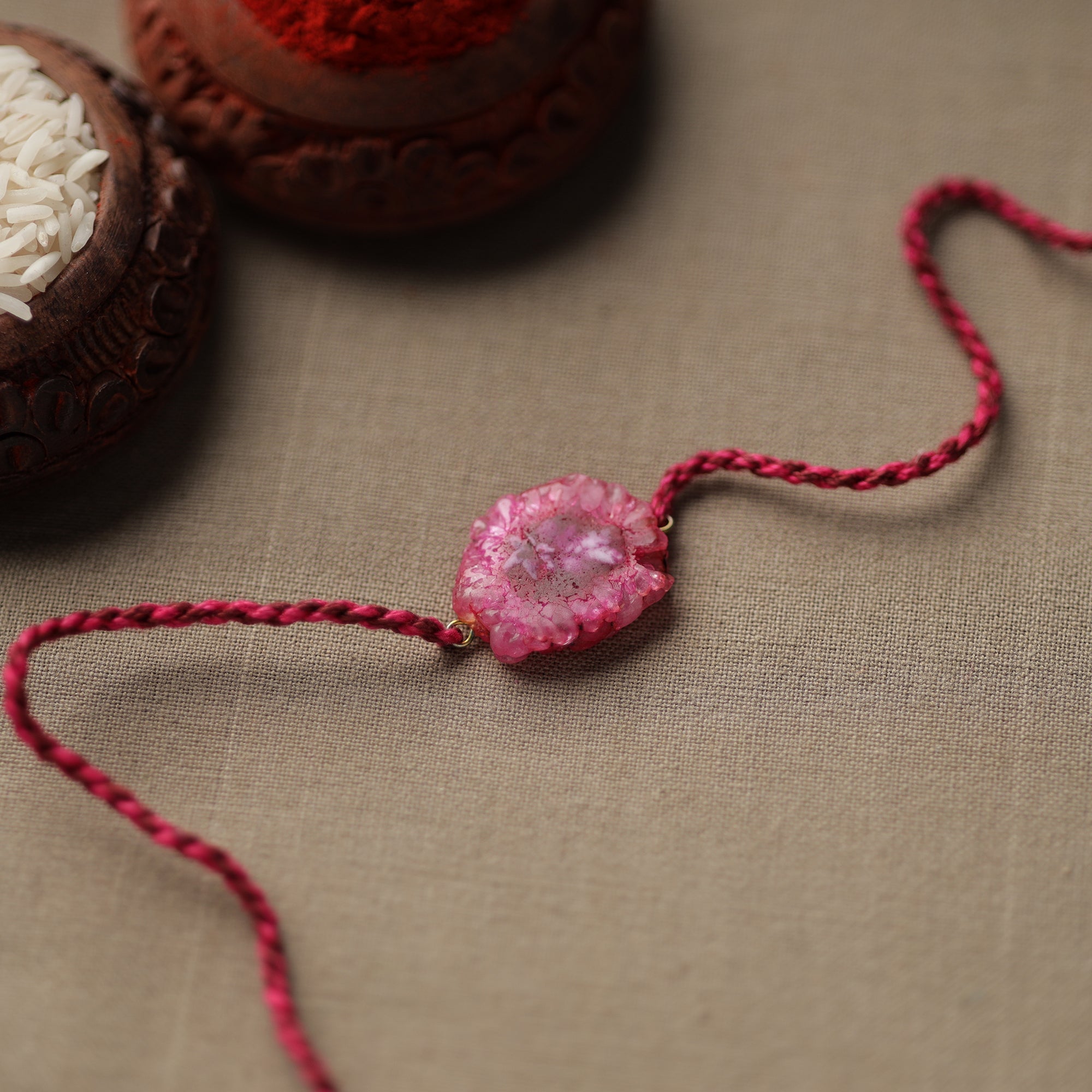 Colourful handmade natural agate stone rakhi handcrafted for the very special khatta meetha bond between brother and sister.