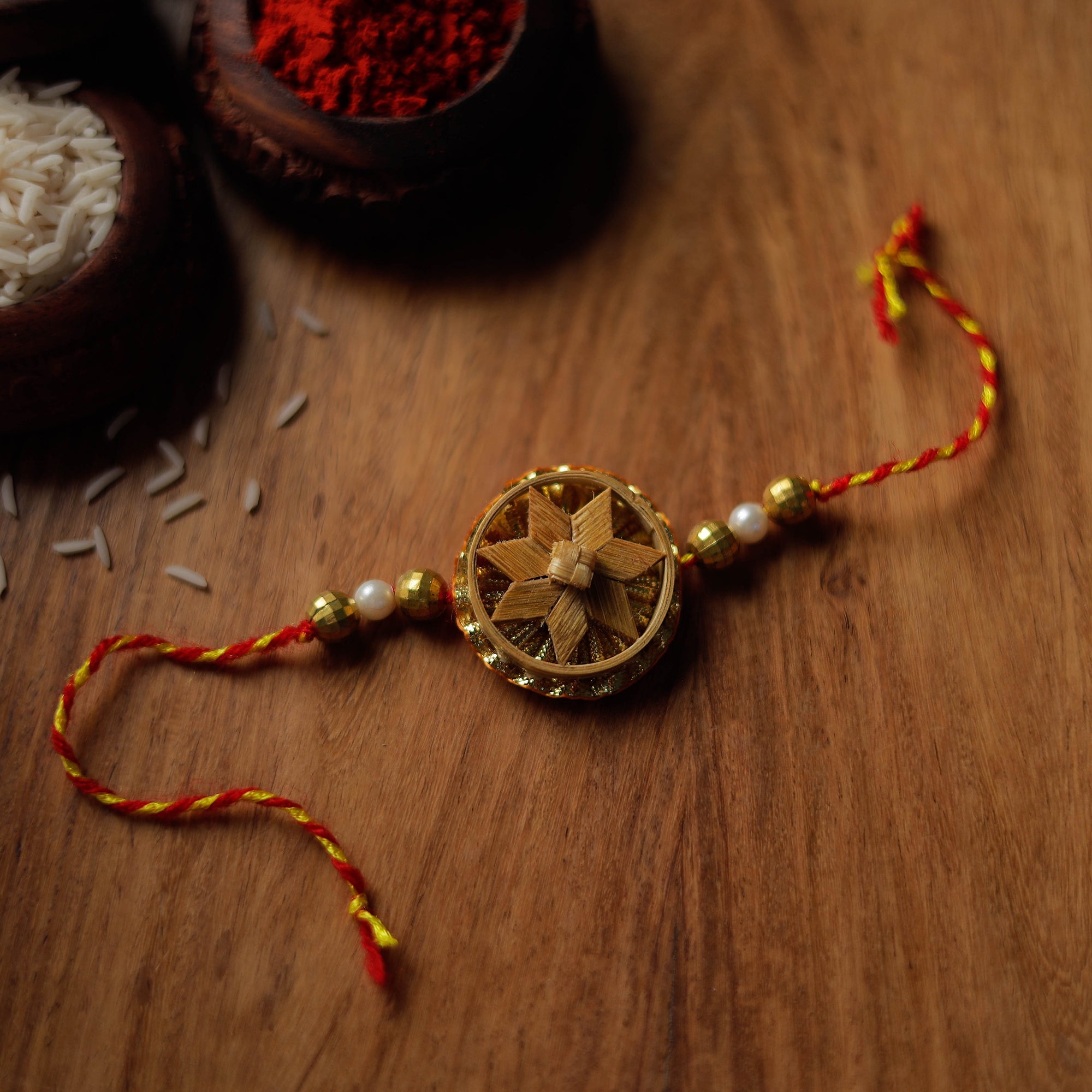 Rakhi can be made from materials such as silk thread, wool, satin ribbon, etc.