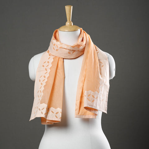 Fine quality hand-stitched traditional orange applique cut work soft cotton stole. Its unique style appliqué work does magic in light and shade with beautiful stories and patterns. This famous applique cut work is done by the artisans of Barmer, Rajasthan.