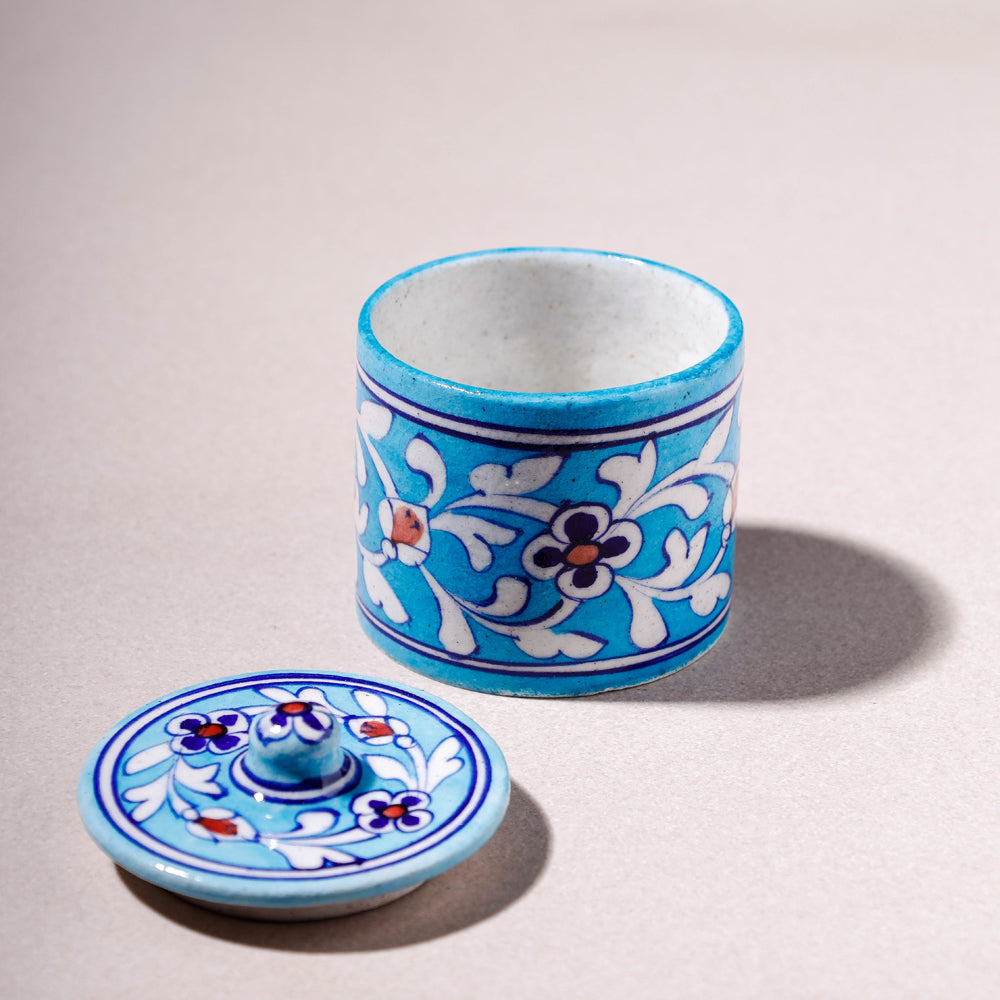 Blue handcrafted blue pottery ceramic barni/storage jar with lid. Store your favourite pickle just like the old days and in the traditional style in these ceramic barni. This is also an excellent festival gifting option.