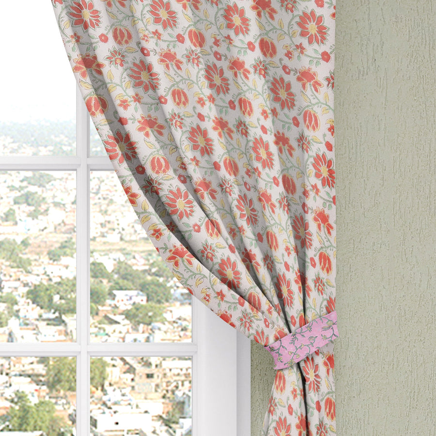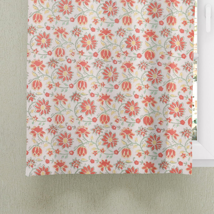 Fine quality sanganeri pure cotton fabric window curtain. Add an ethnic feel to any room in your house by adding this curtain to your exquisite home decor collection. Sanganeri is a hand-block printing technique originating from Sanganer, a village in the southern part of Jaipur, Rajasthan. Bleed free VAT dyes used.