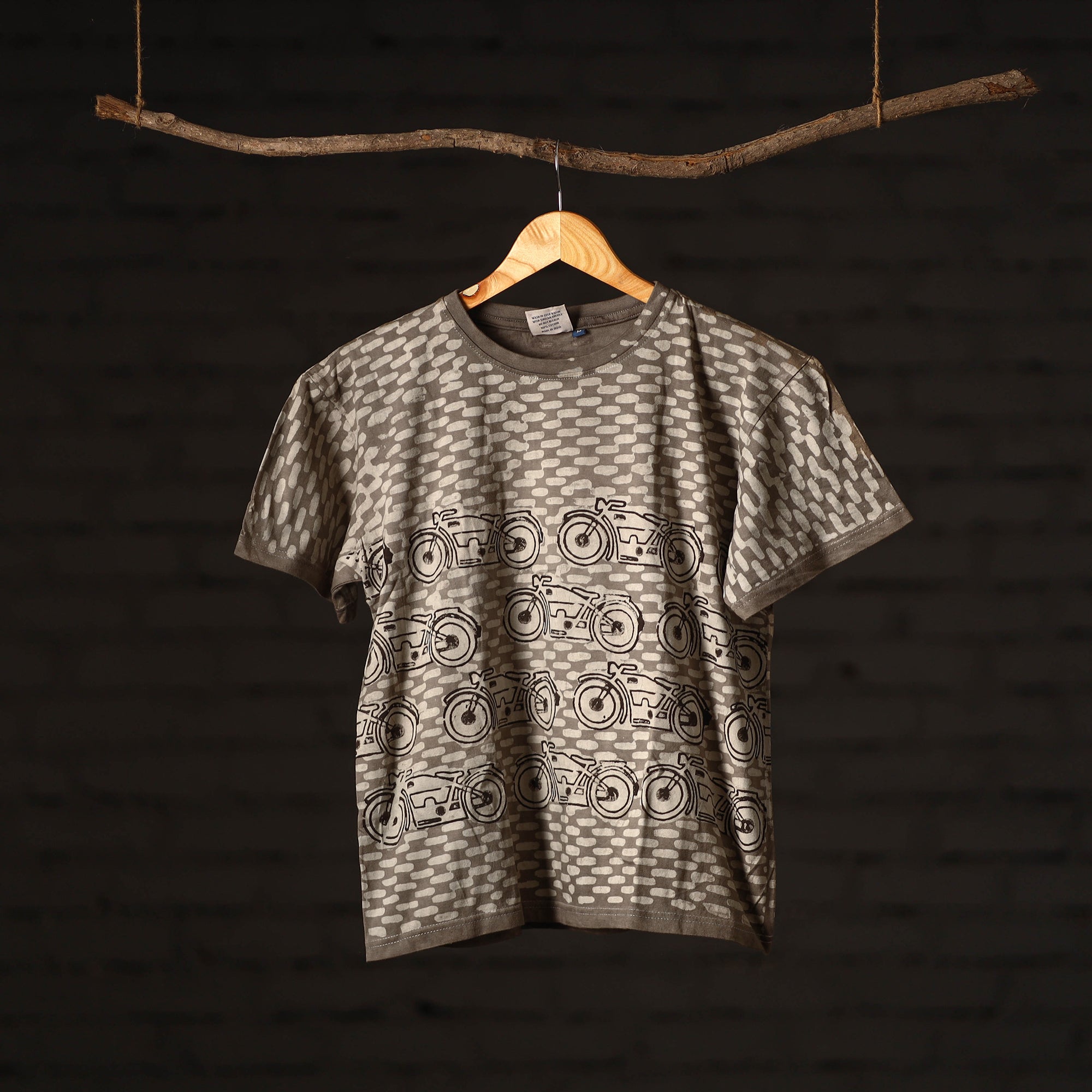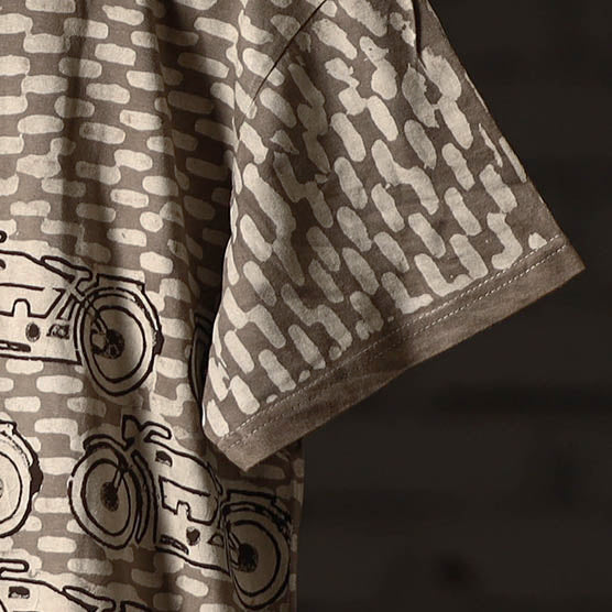 Pure cotton, natural dyed, hand block printed unisex round neck t-shirt. Contemporary designs made through traditional processes, by skilled fourth generation textile printers in Rajasthan. This slow fashion, hand block printed cotton t-shirt brings back the love for traditional skills, with a modern aesthetic and design.
