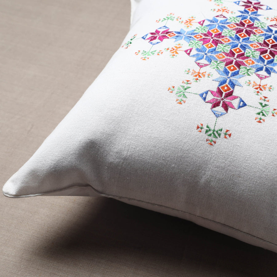 Fine quality soof stitch embroidery pure handloom cotton cushion cover.
