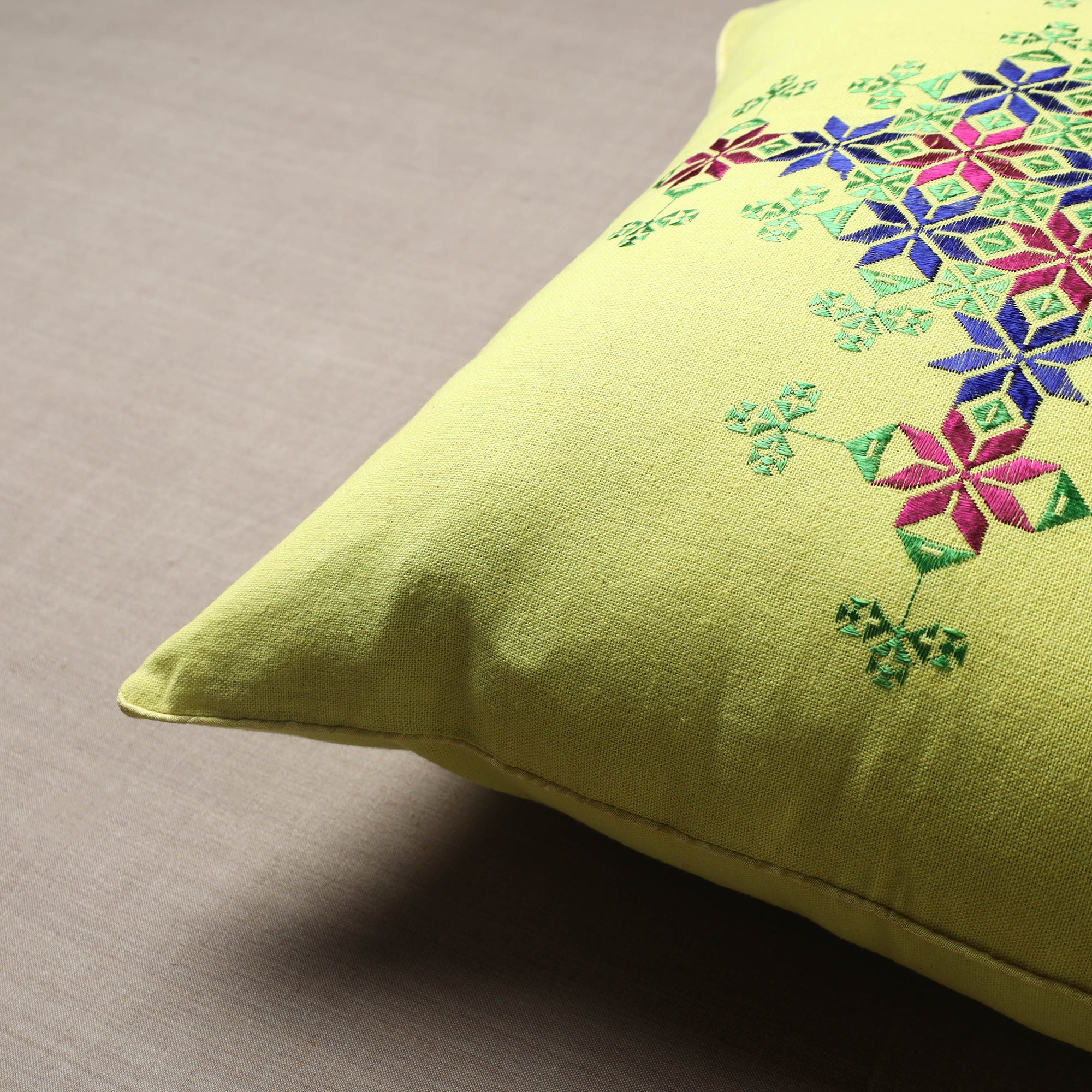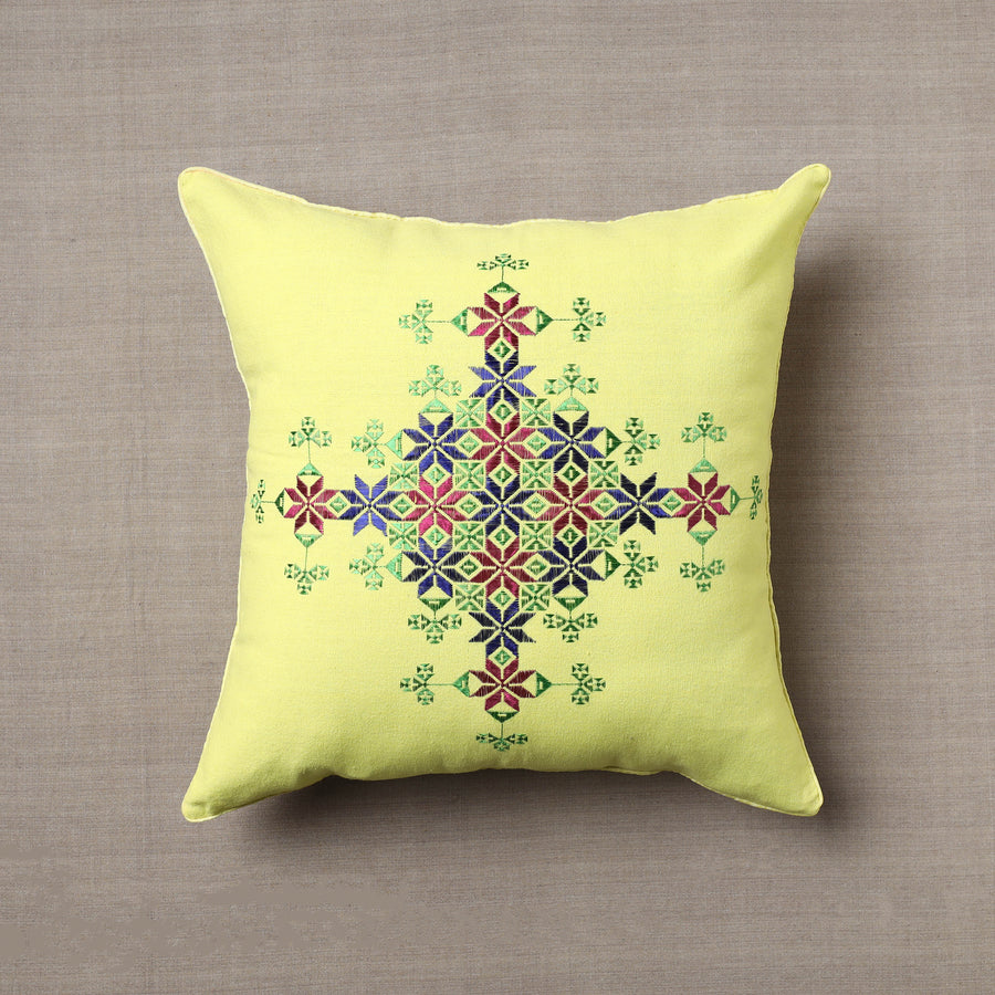 Fine quality soof stitch embroidery pure handloom cotton cushion cover.