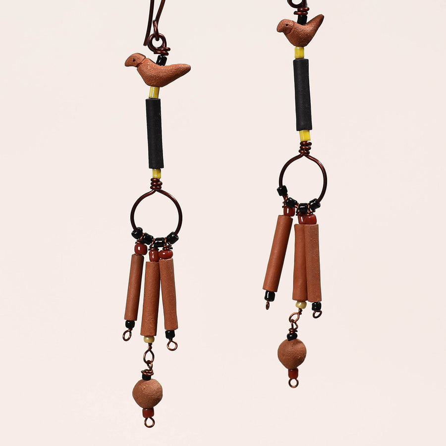This brown earrings is very intricate work of Terracotta. Its beauty is from Terracotta clay, copper wire, glass & wooden beads. It is 100% eco-friendly. We have completely created it to enhance your happiness whenever you wear it. Because it's really connected to nature, it's perfect whenever you want to look true. Be it festivals, functions like wedding, anniversary, casual outing, office, gathering of friends, its beauty enhances your appearance. Ubuntu Arts is truly committed to elegant, handmade, green products. Many thanks for your patronage.