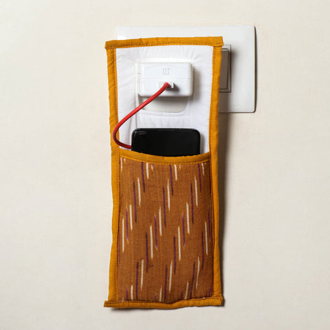 Yellow Handmade mobile charging holder made up with cotton fabric. Premium quality fabric is used to make it soft & comfy. It's quite handy & portable while traveling. It keeps your phone safe and protected. It's very convenient during charging your mobile phone. It comes in different colors. It fits with your mobile & enhances the beauty & styling of your mobile phone.