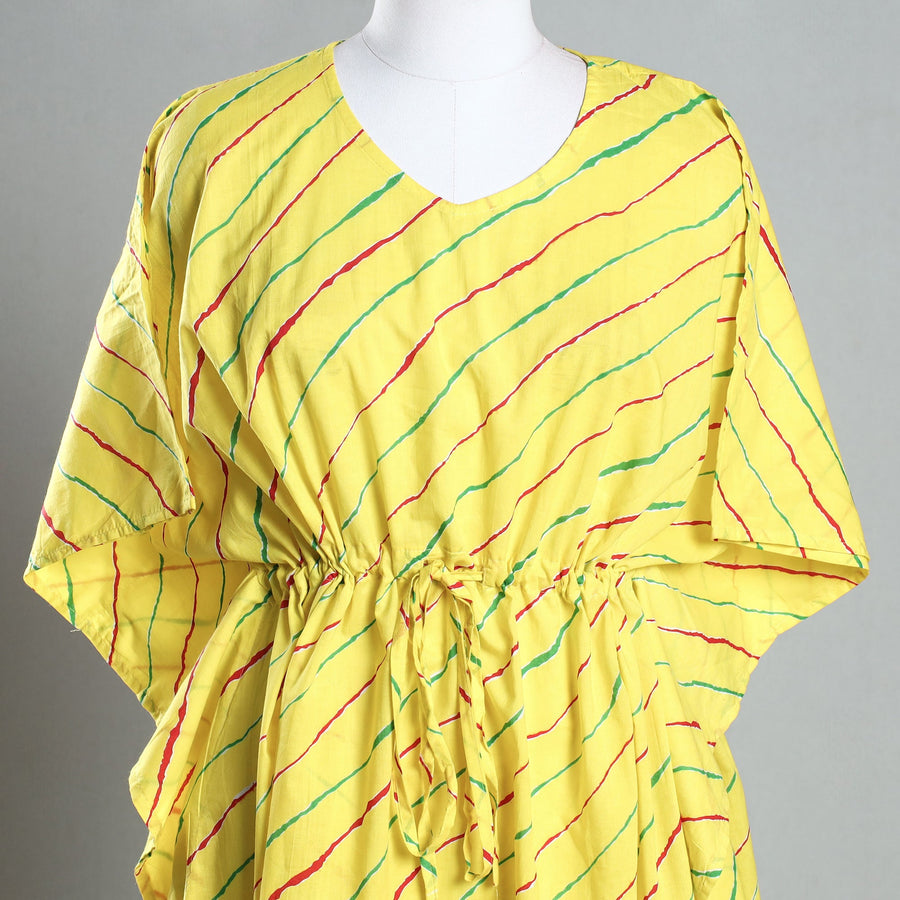 Fine quality handmade cotton fabric knee length kaftan dress. A traditional kaftan or caftan is an knee-length garment with long, flowing sleeves. It has an adjustable drawstring waist. These loose-fitting cotton kaftans are enhanced by a soft touch and beautiful tie-dye patterns. This dress will allow you to move with ease and comfort. The drawstring waist tie will give you the freedom to customize the fit to suit your unique shape.
