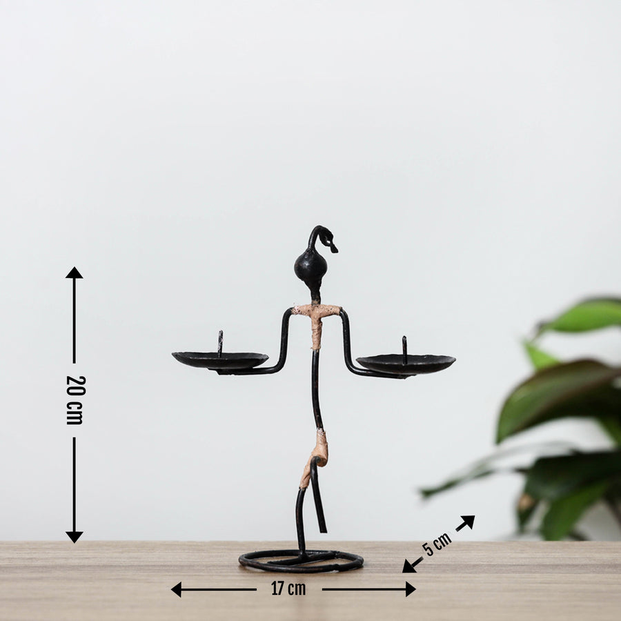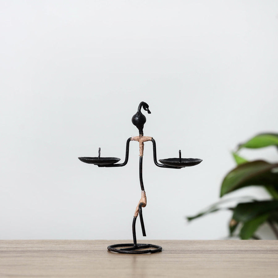 Bastar Tribal Wrought Iron Monkey Candle Stand (4 x 3 in)