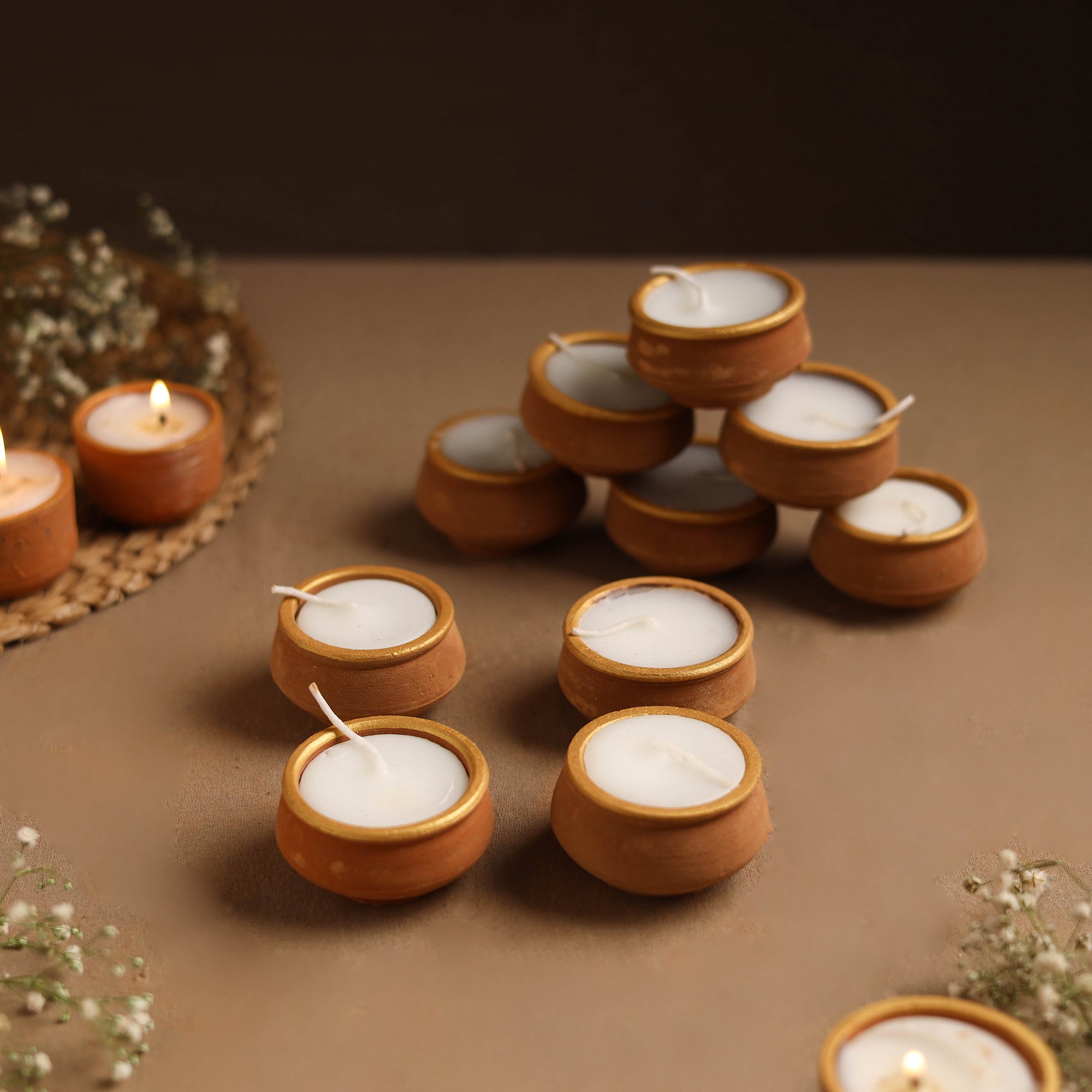 Illuminate your space with our handmade terracotta handi candle (set of 13). Made from natural clay, these candles radiate a warm, earthy charm, ideal for home decor or thoughtful gifting. Each candle burns for a long time, offering a sustainable lighting option.