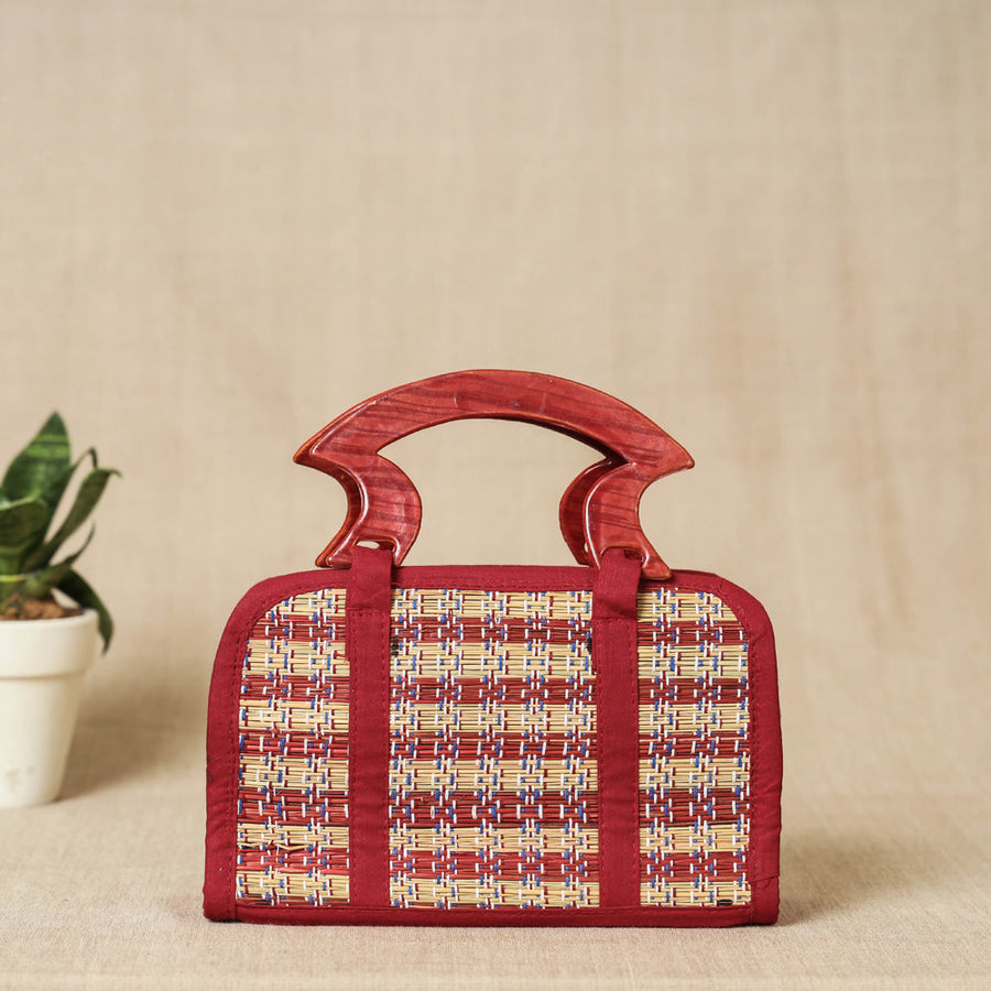 This handcrafted golden grass weaved cosmetic bag / toilet pouch is made with natural madur grass, twisted cotton yarn & madur kathi reed (Cyperus tegetum and C. Pangorie) that grows in the swampy area around Midnapur in West Bengal. The craft of "Madur" weaving is practiced in the residence cum workshops of artisans households with the help of family members.